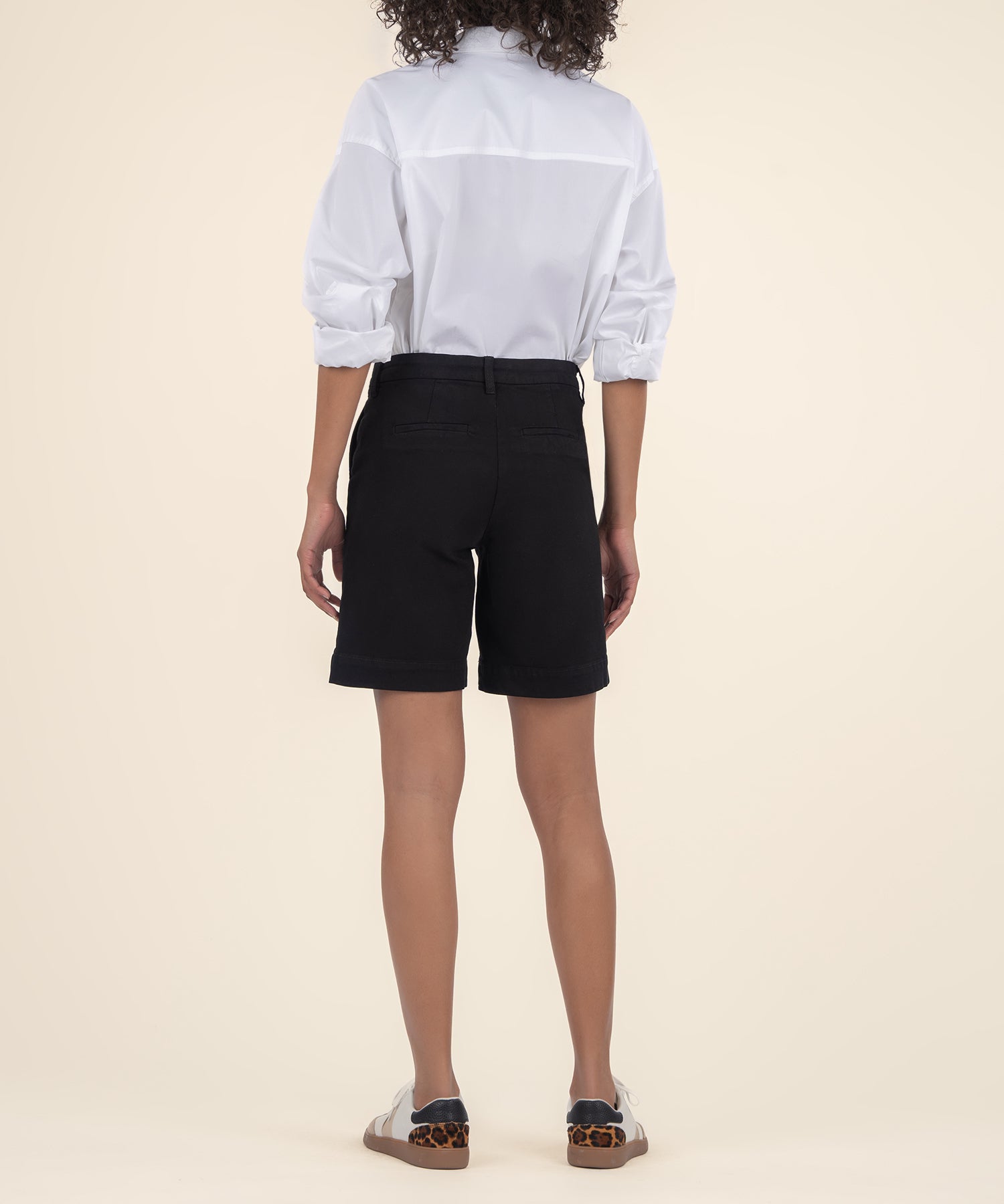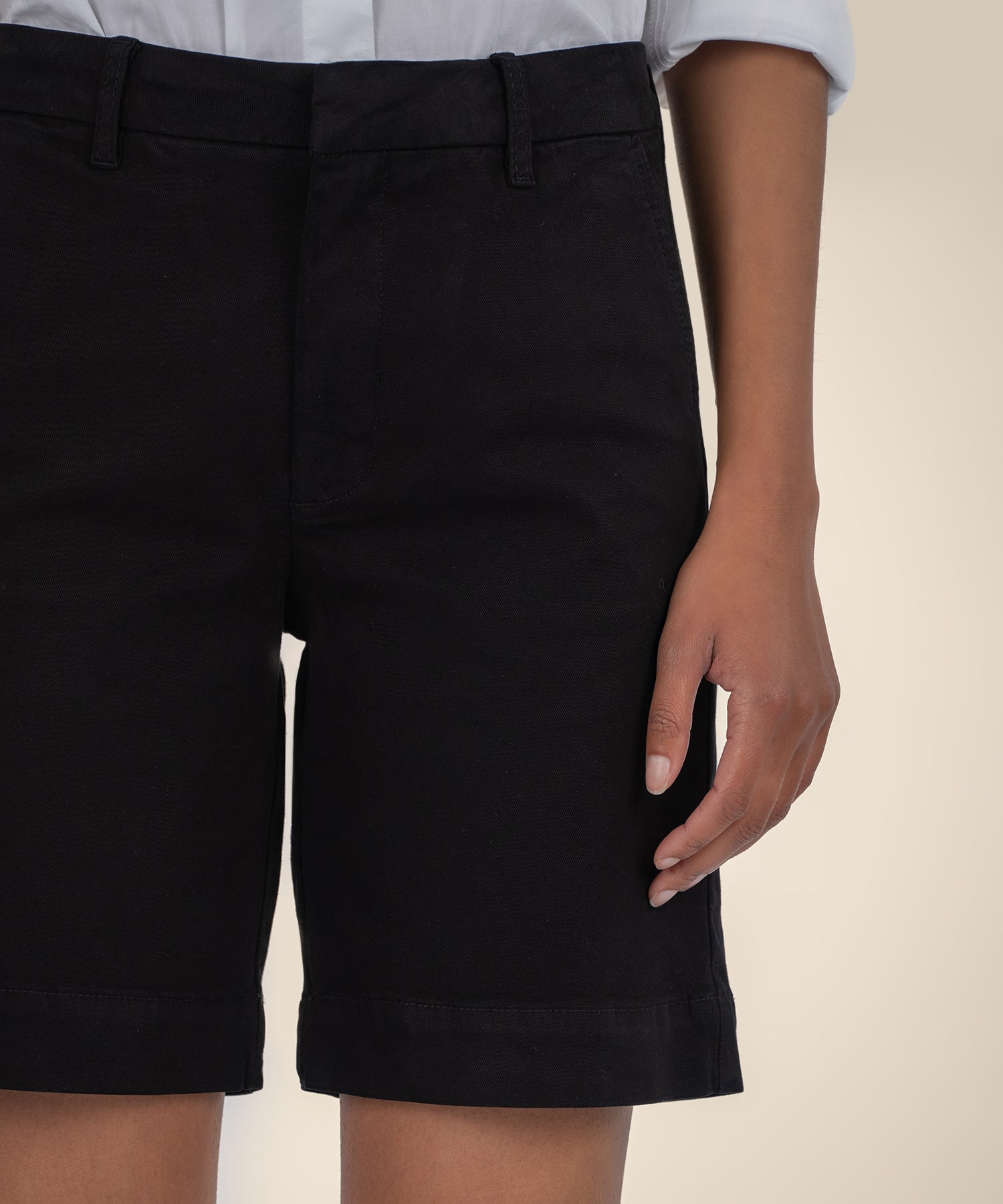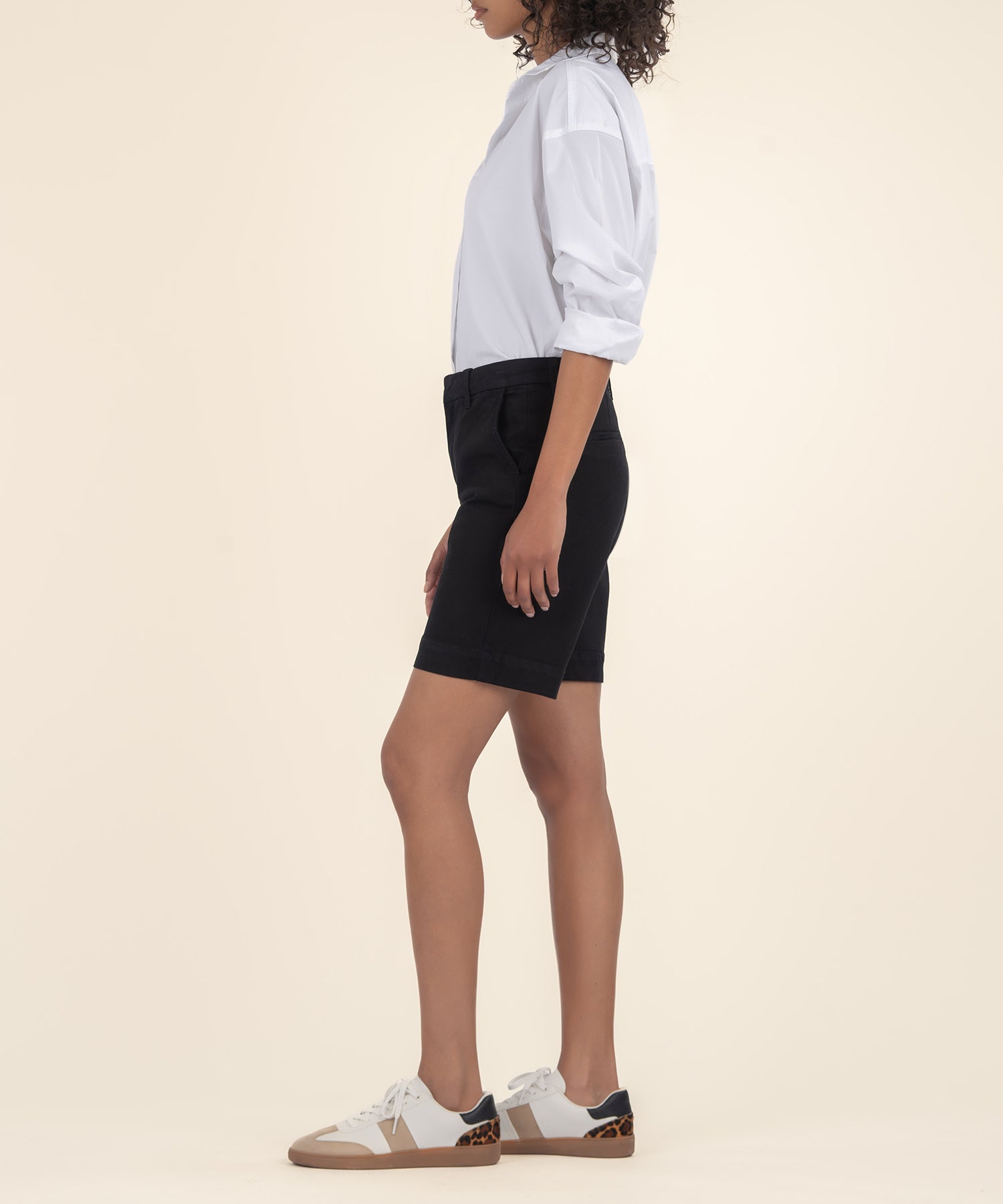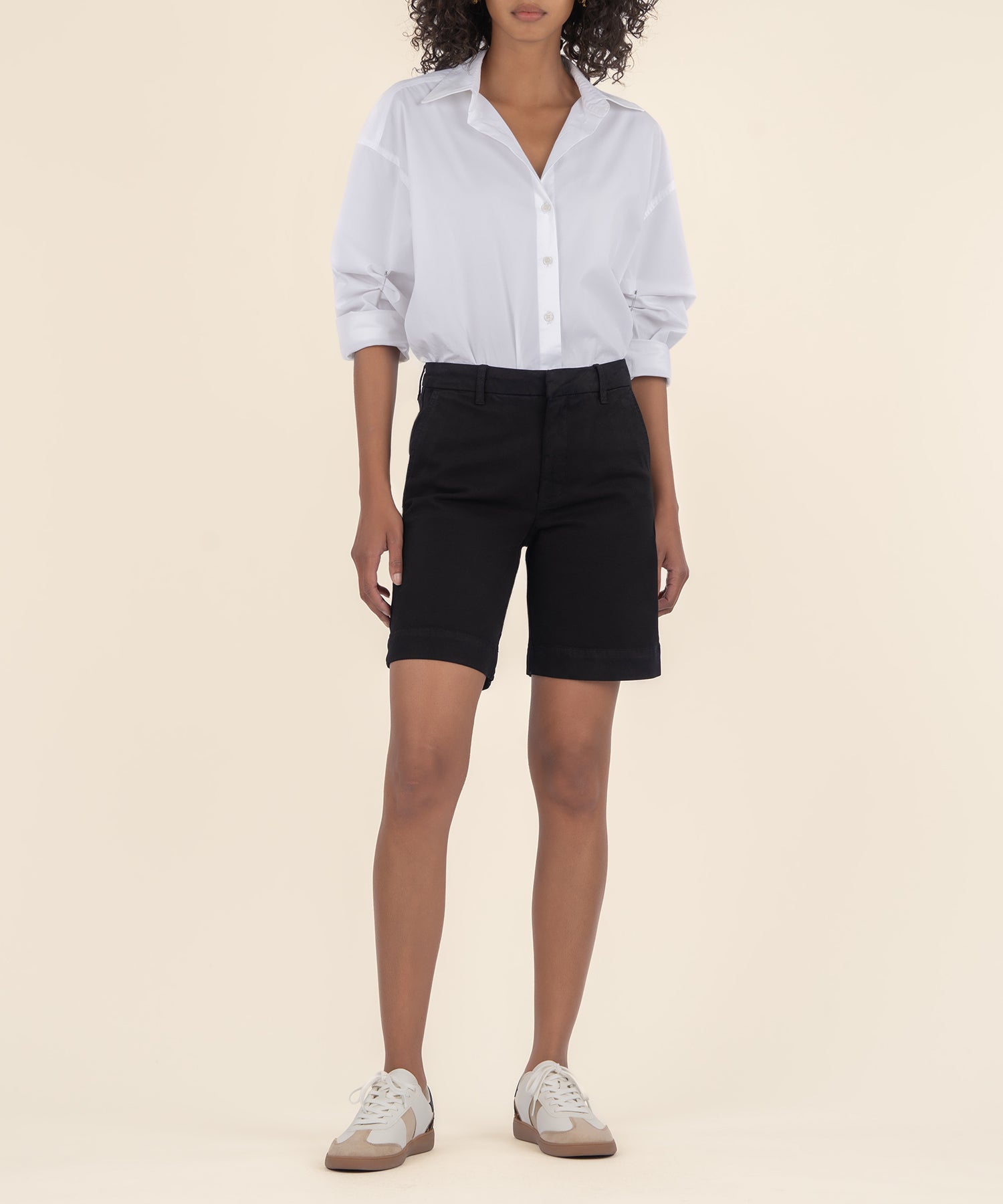 - These high-rise trouser Bermuda shorts feature a sleek zipper and hook front closure, offering a tailored, polished look that\'s perfect for any occasion.
