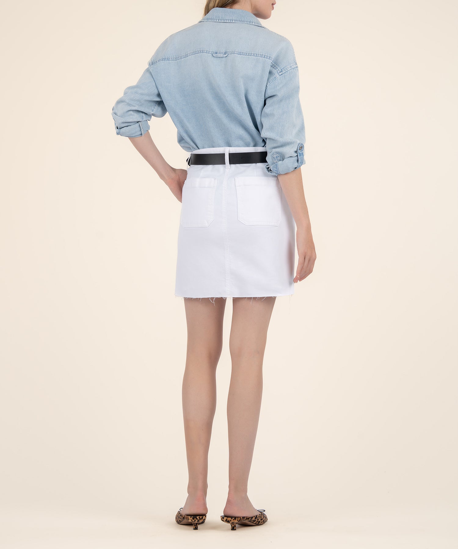 • This skirt features a stylish raw hem and a unique porkchop pocket for a touch of functional flair. Its timeless design makes it the perfect addition to any casual wardrobe.