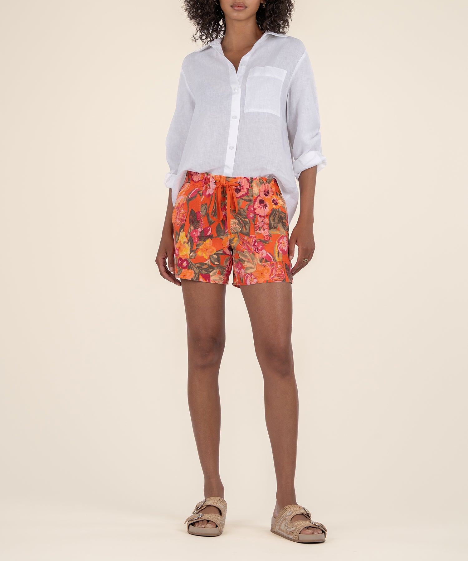 - Size & Fit: Category: Relaxed, Details: Tie Front Waist, Inseam: 5", Leg Opening: 25", Rise: 13"