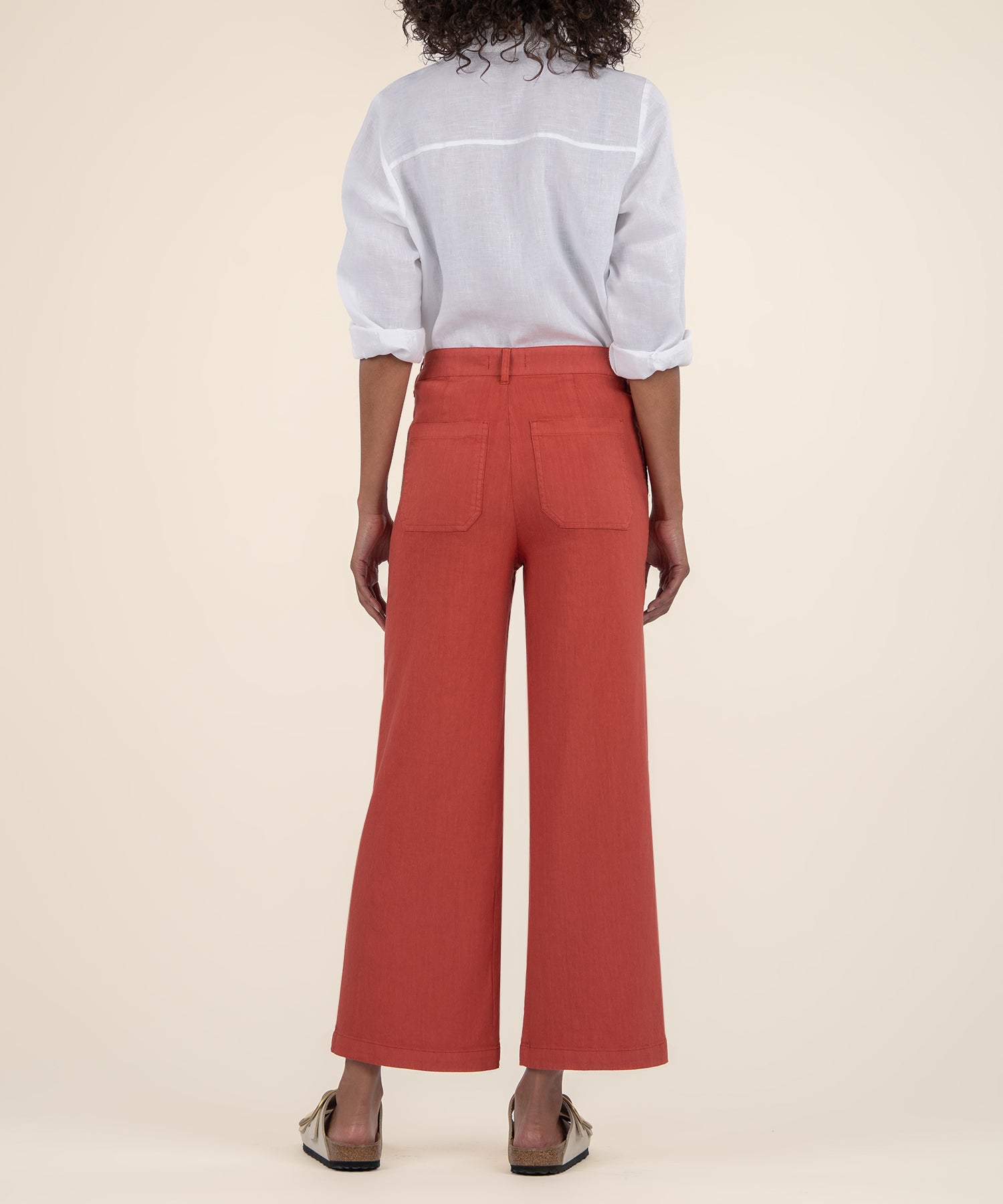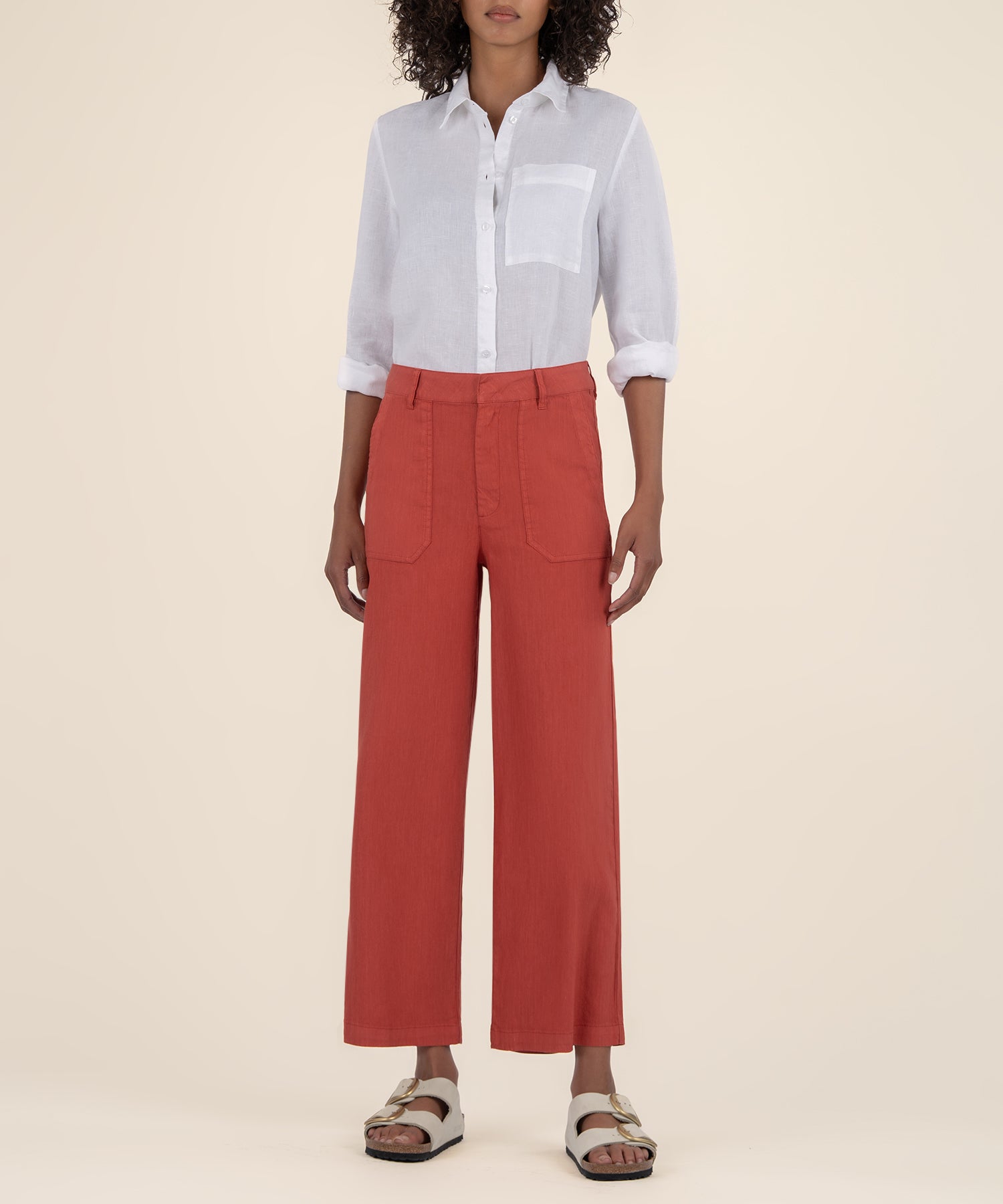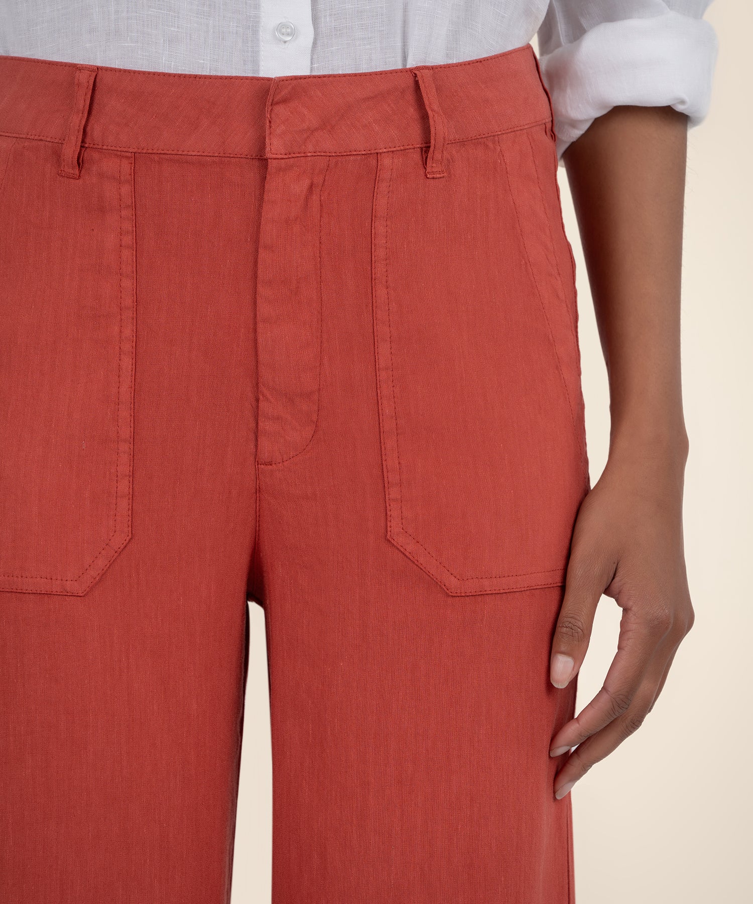 • These wide-leg ankle pants, crafted from a breathable linen blend and featuring porkchop pockets, are a versatile and timeless addition to your casual collection.