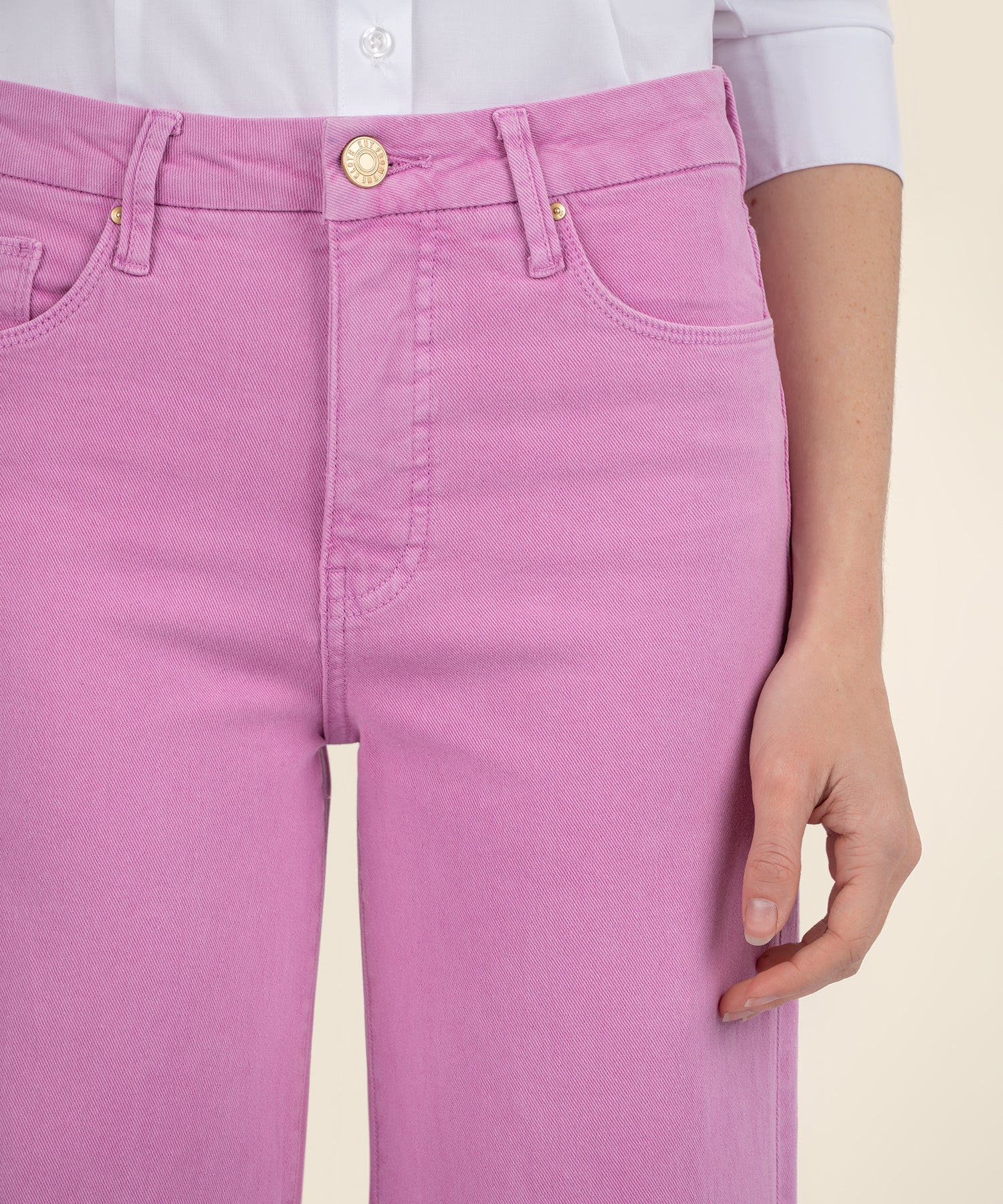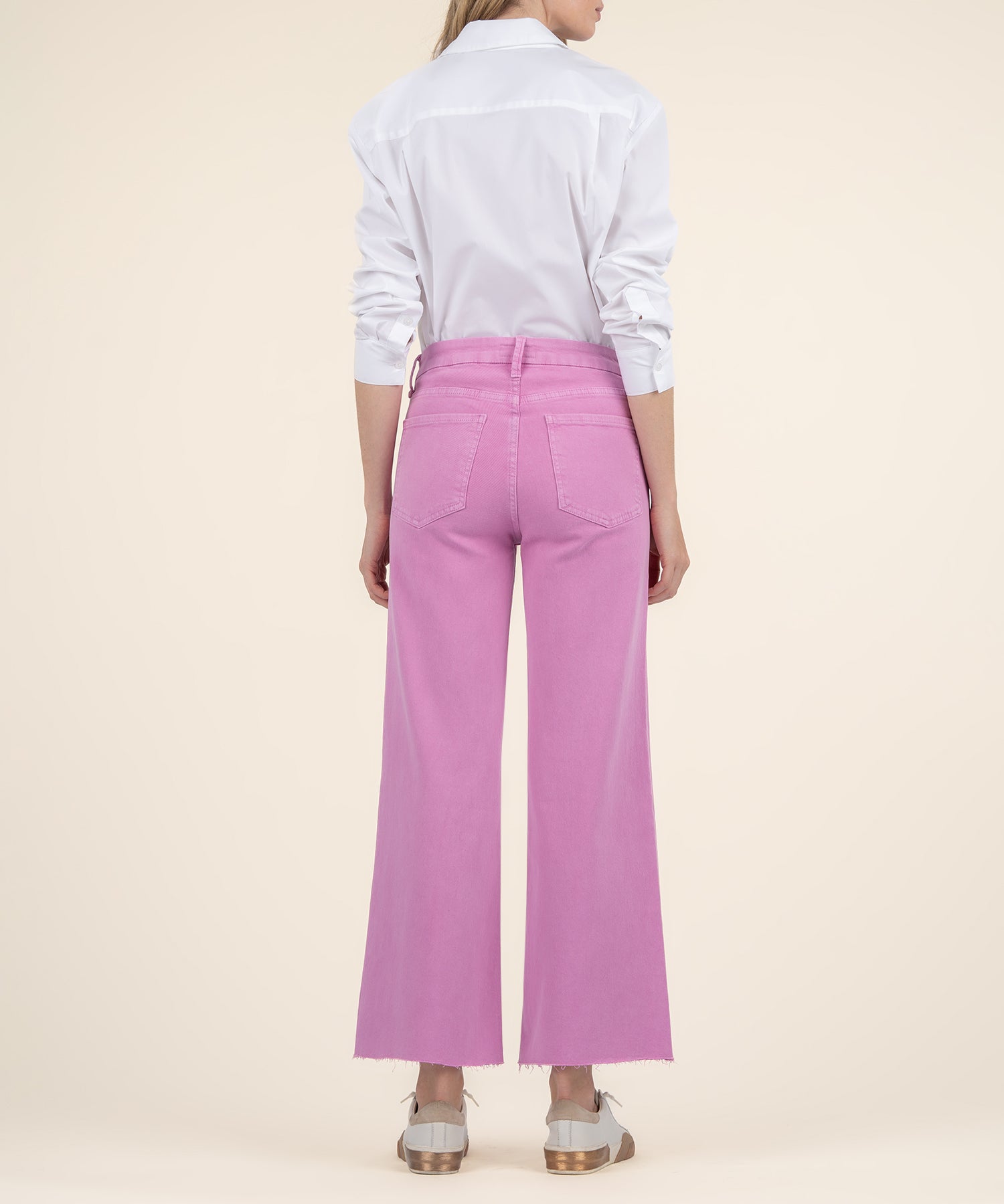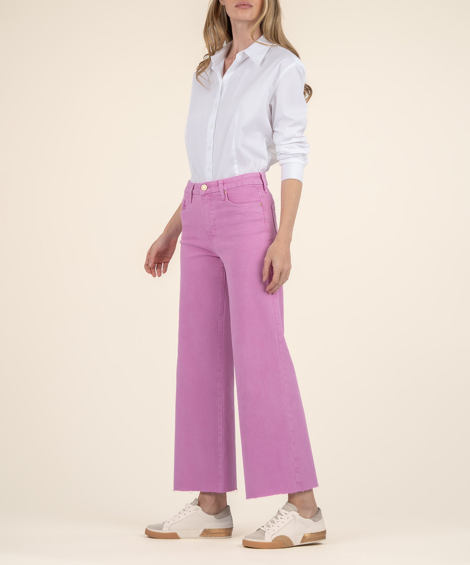 - A vibrant hue refreshes the style of these subtly faded, raw-hem wide-leg jeans fitted with Fab Ab front pockets that comfortably shape and smooth.
