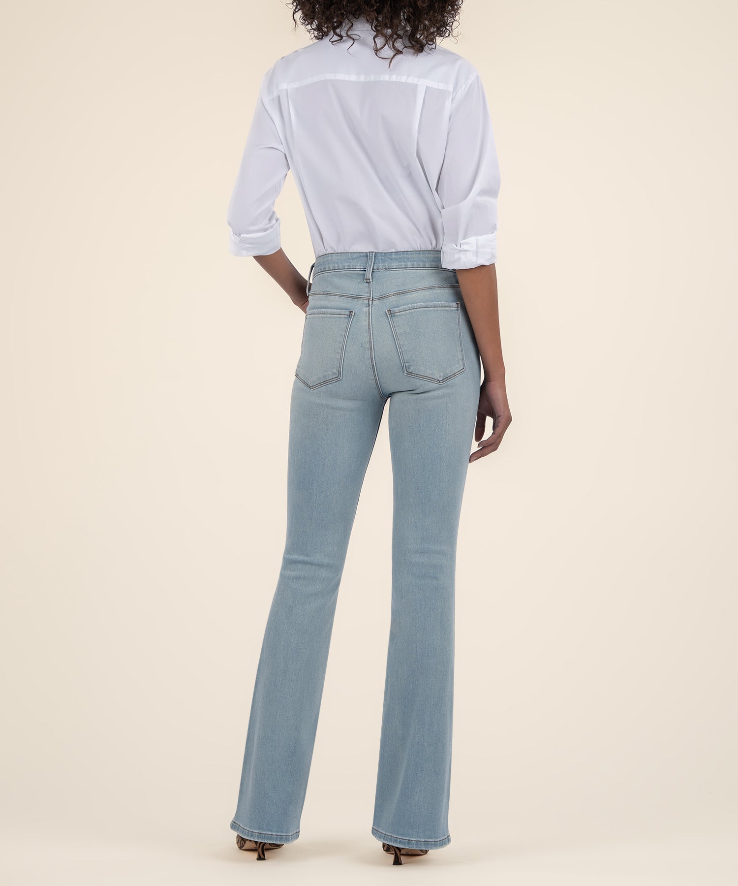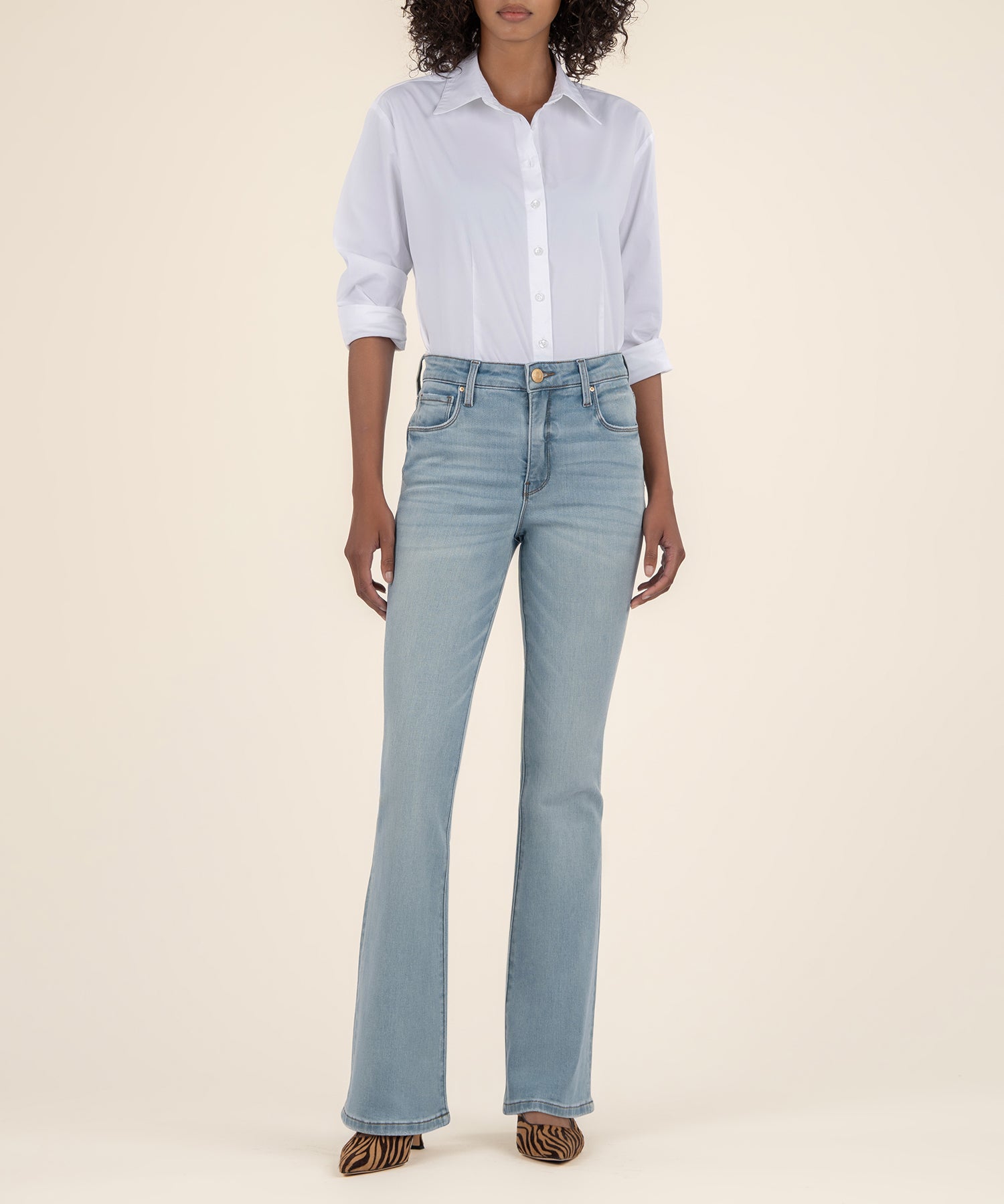 • These high-rise Fab Ab flare jeans offer a flattering fit with a touch of stretch for ultimate comfort. Designed to shape and enhance your silhouette, they’re the perfect pair for a stylish, retro-inspired look.