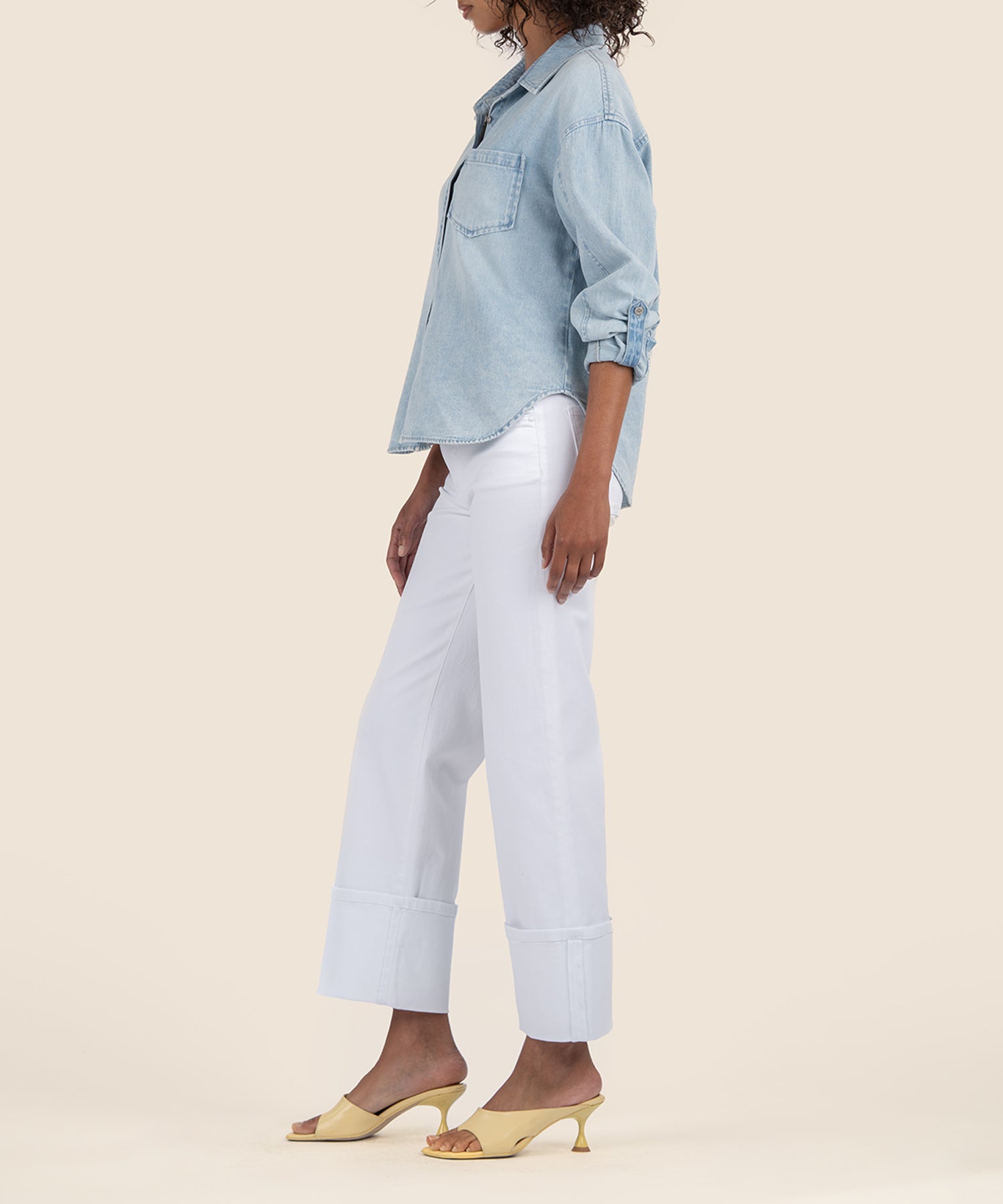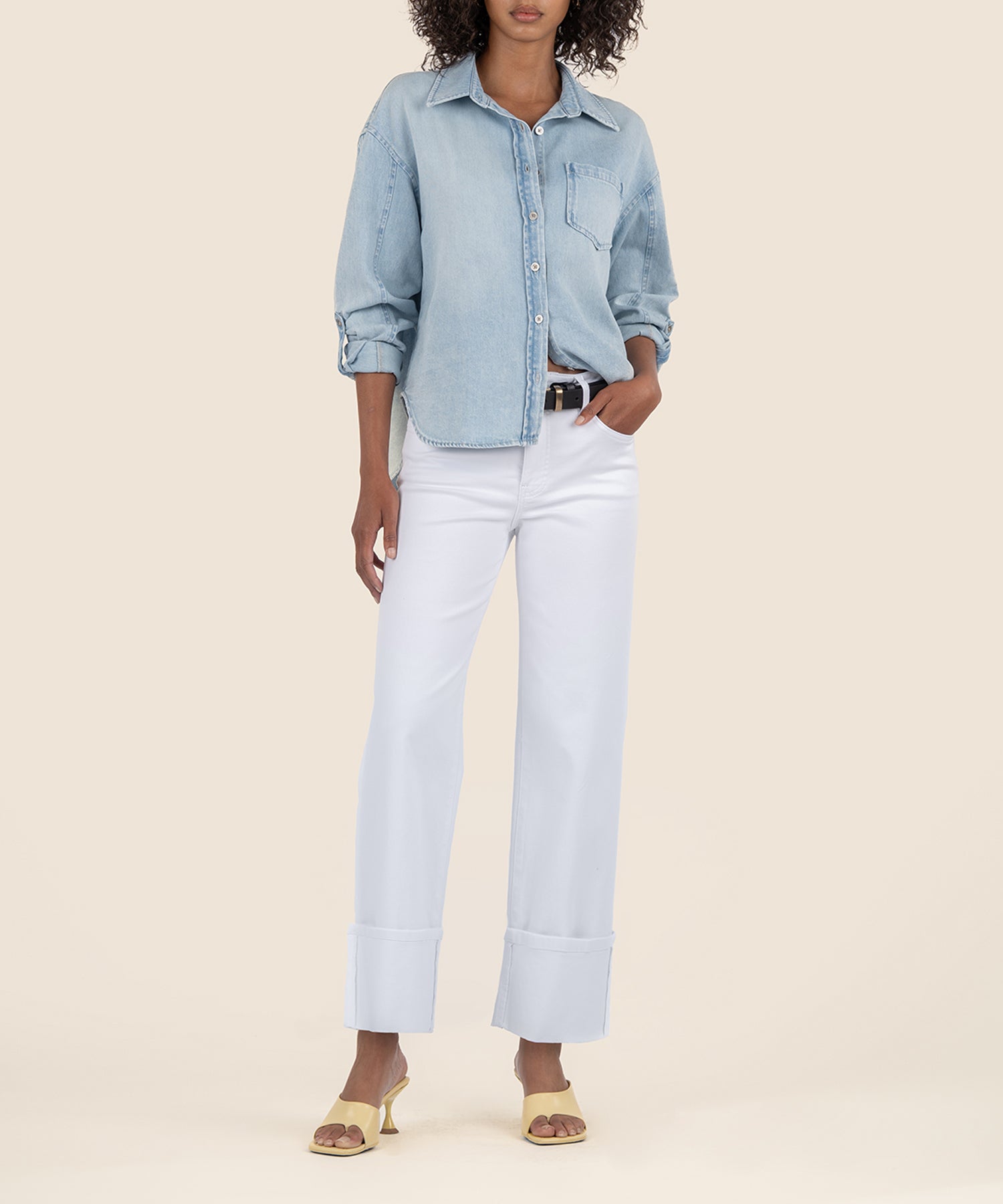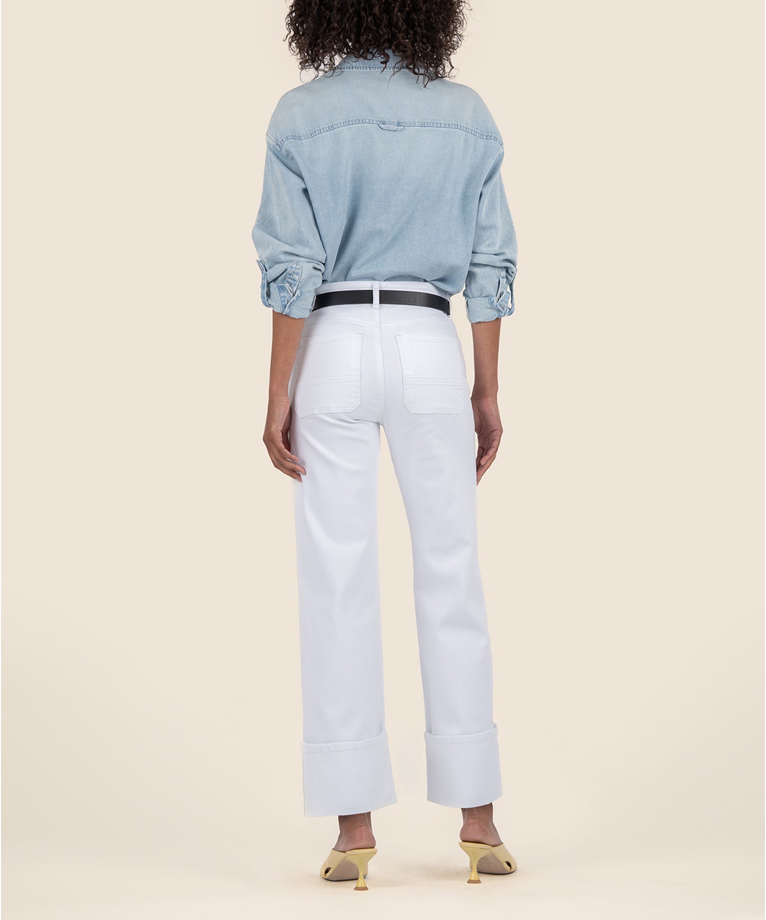 - With a flattering high-rise fit and wide-leg silhouette, these Fab Ab jeans feature a stylish roll-up detail for a relaxed, chic look. Perfect for adding comfort and effortless style to your wardrobe.