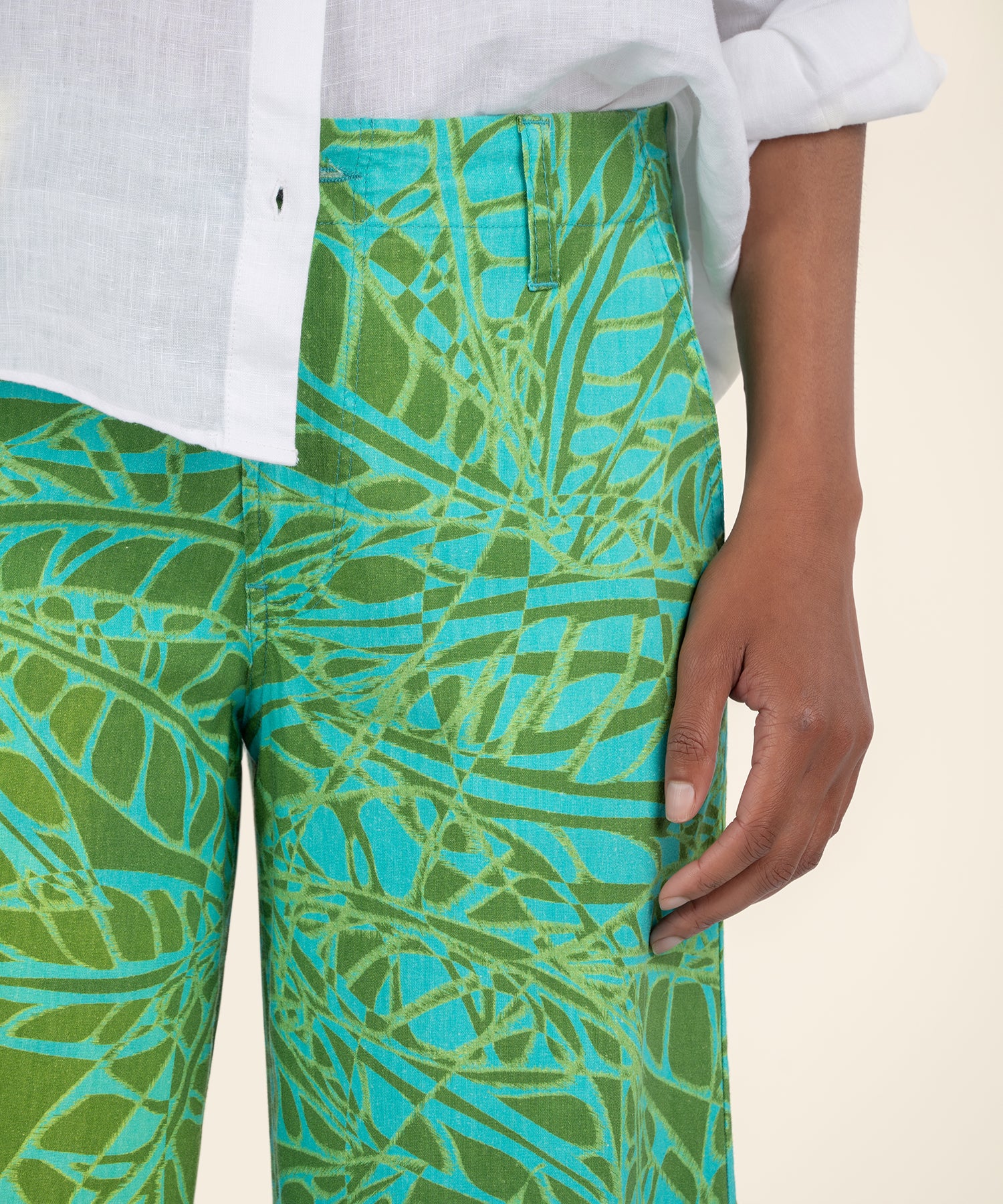 - Introducing our Beach Collection – an online exclusive that adds a vibrant touch to your summer wardrobe. These wide-leg pants are crafted from a breathable linen-mixed material, offering the perfect blend of comfort and style for those sunny beach days. The unique print creates a bold, eye-catching look that’s sure to turn heads.