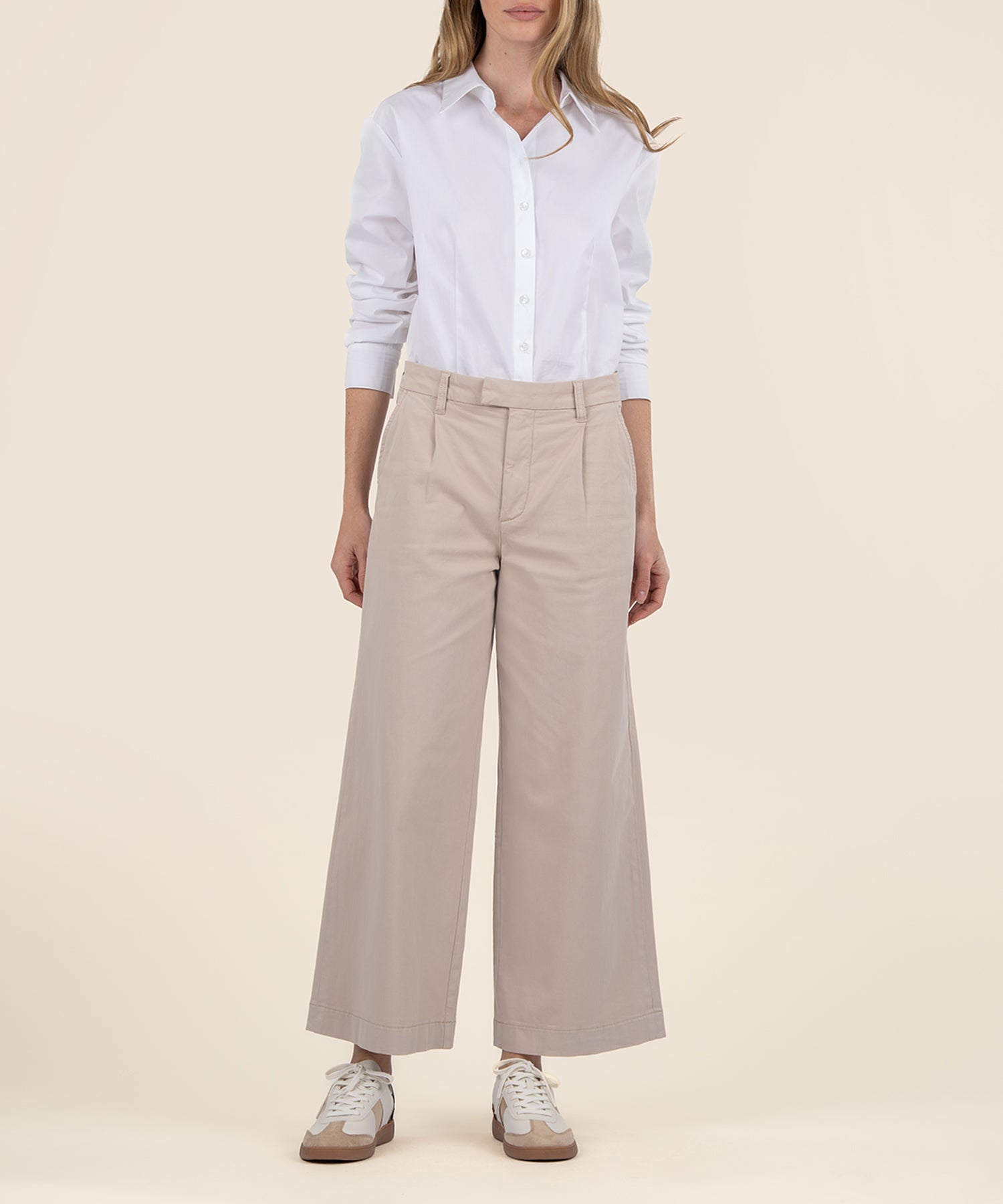 • These Super High Rise Wide Leg Pants feature a flattering high-rise waist, wide-leg fit, and front pleat detail for a chic, versatile look.