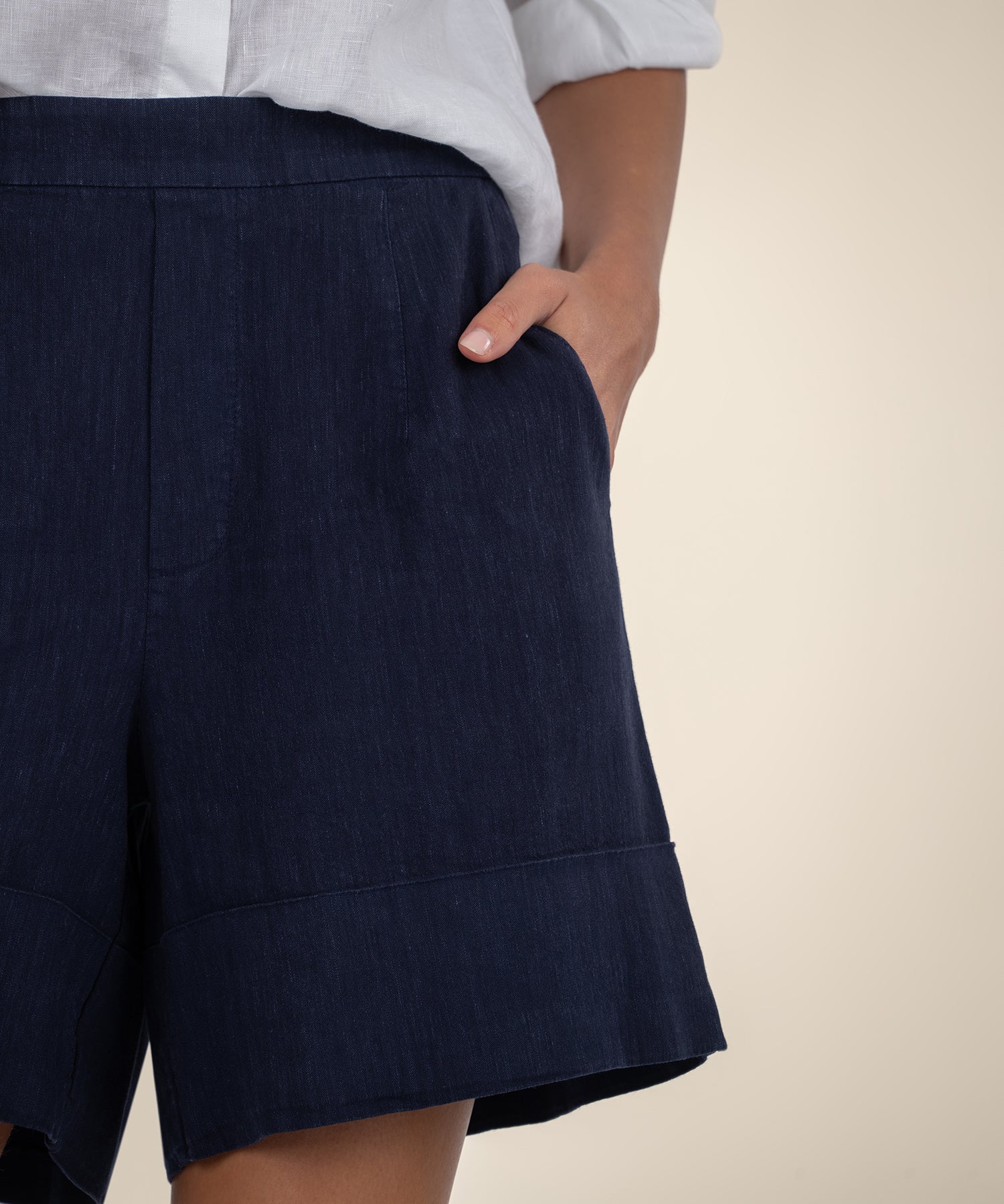 - These relaxed shorts are crafted from a breathable linen blend material, perfect for warm-weather days. They’re designed with an elastic waist for all-day comfort and feature a subtle hem detail for a clean finish.