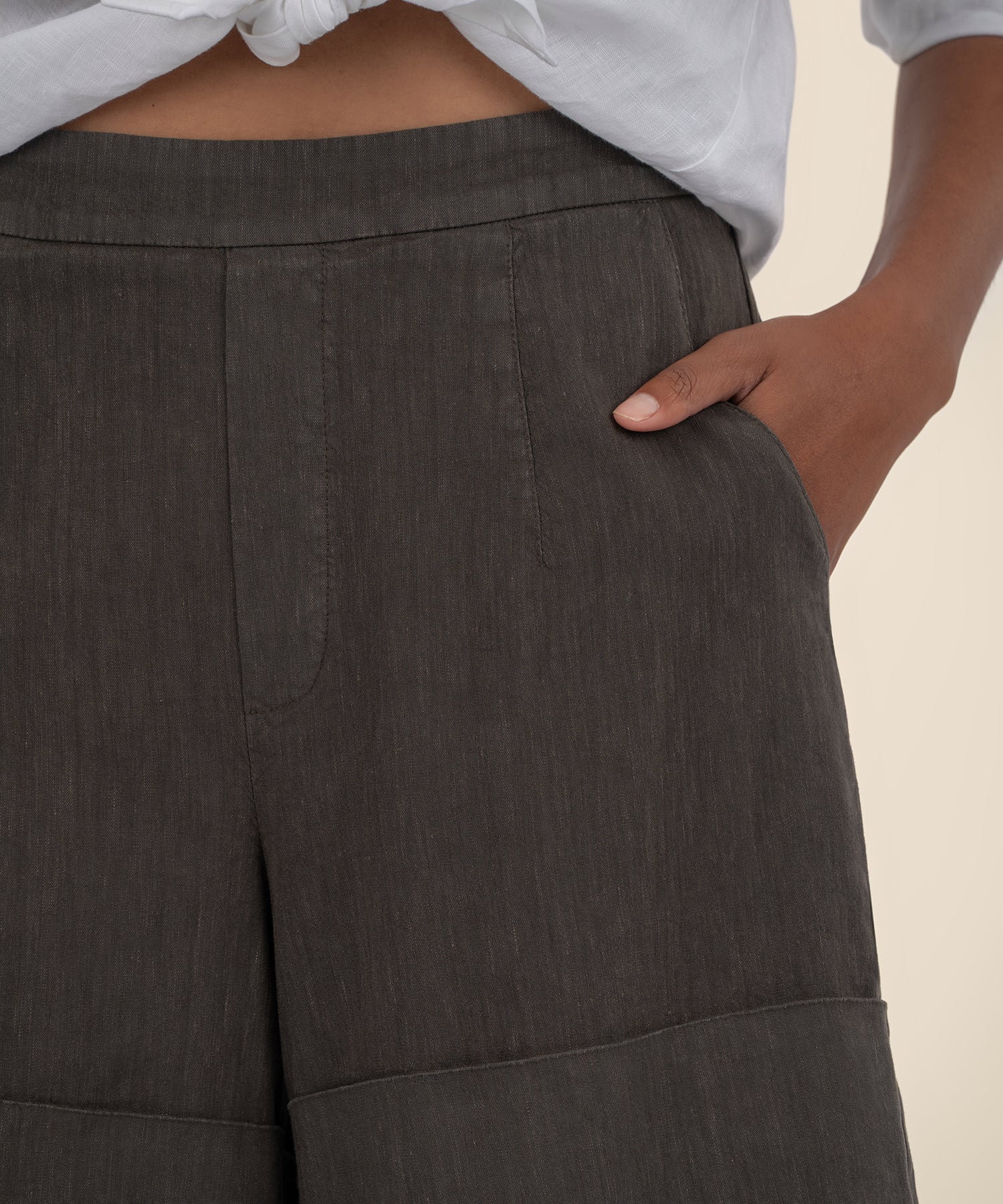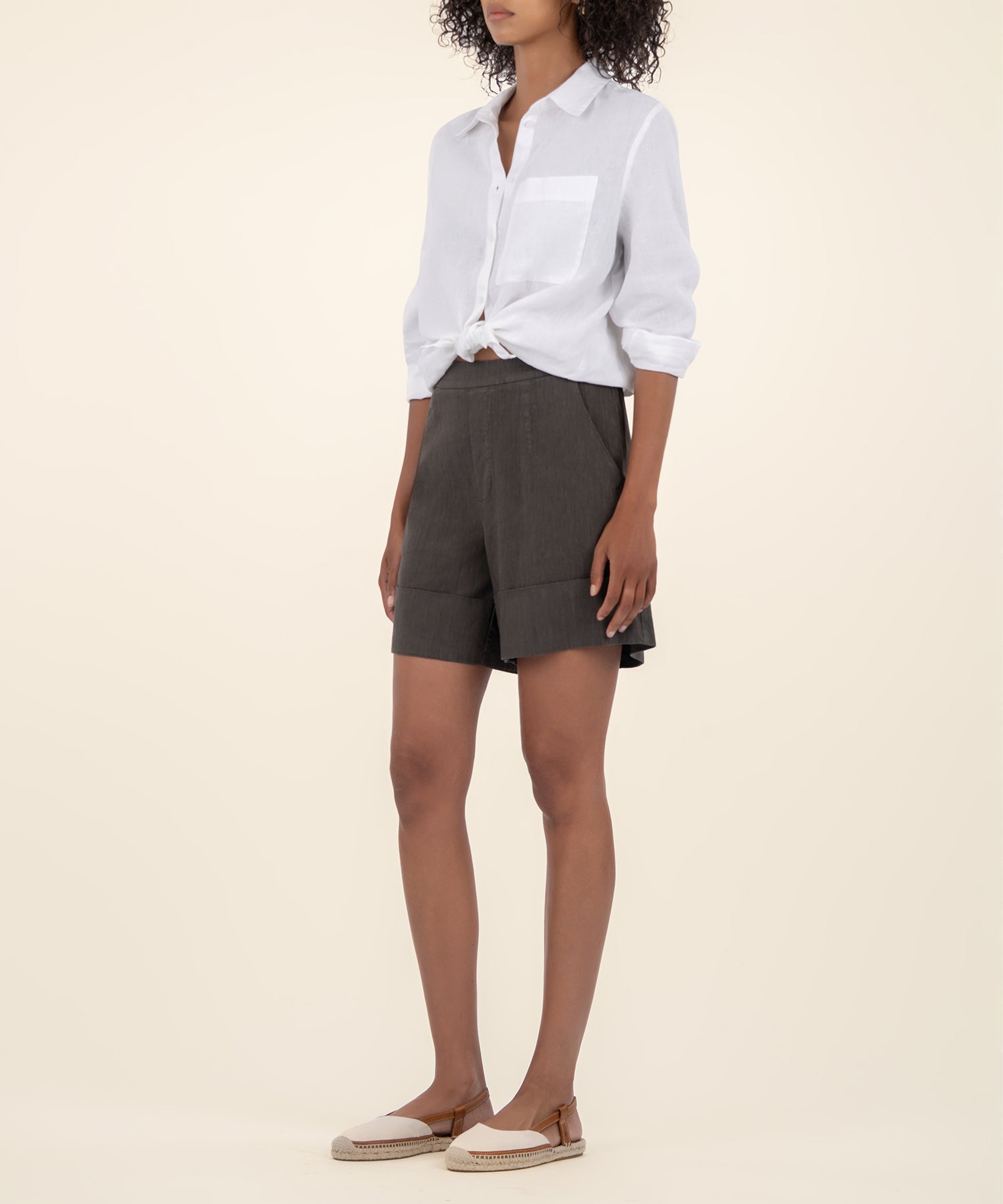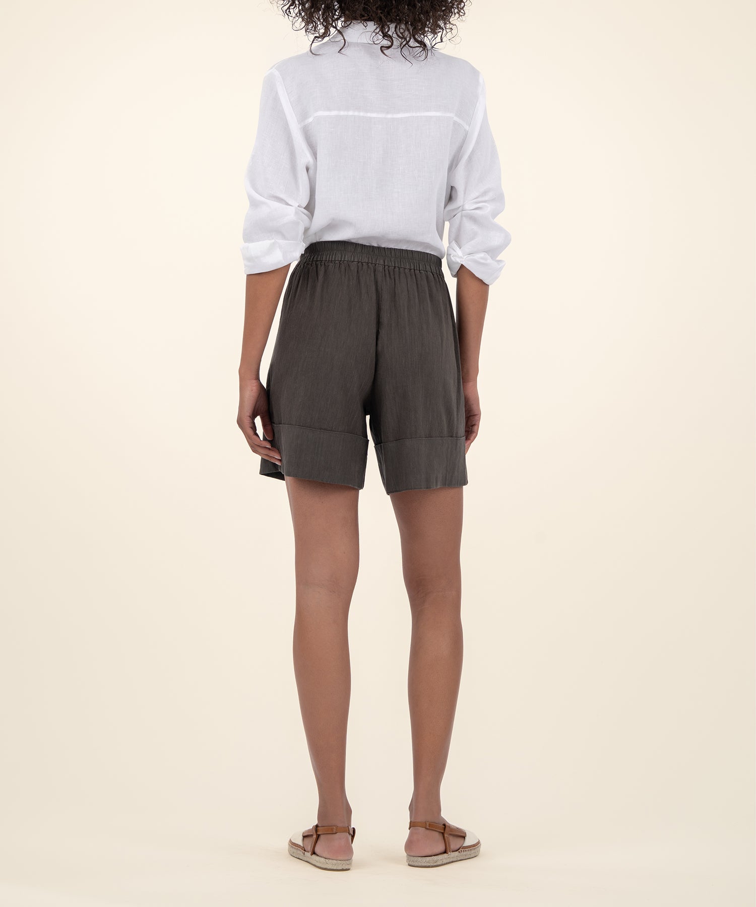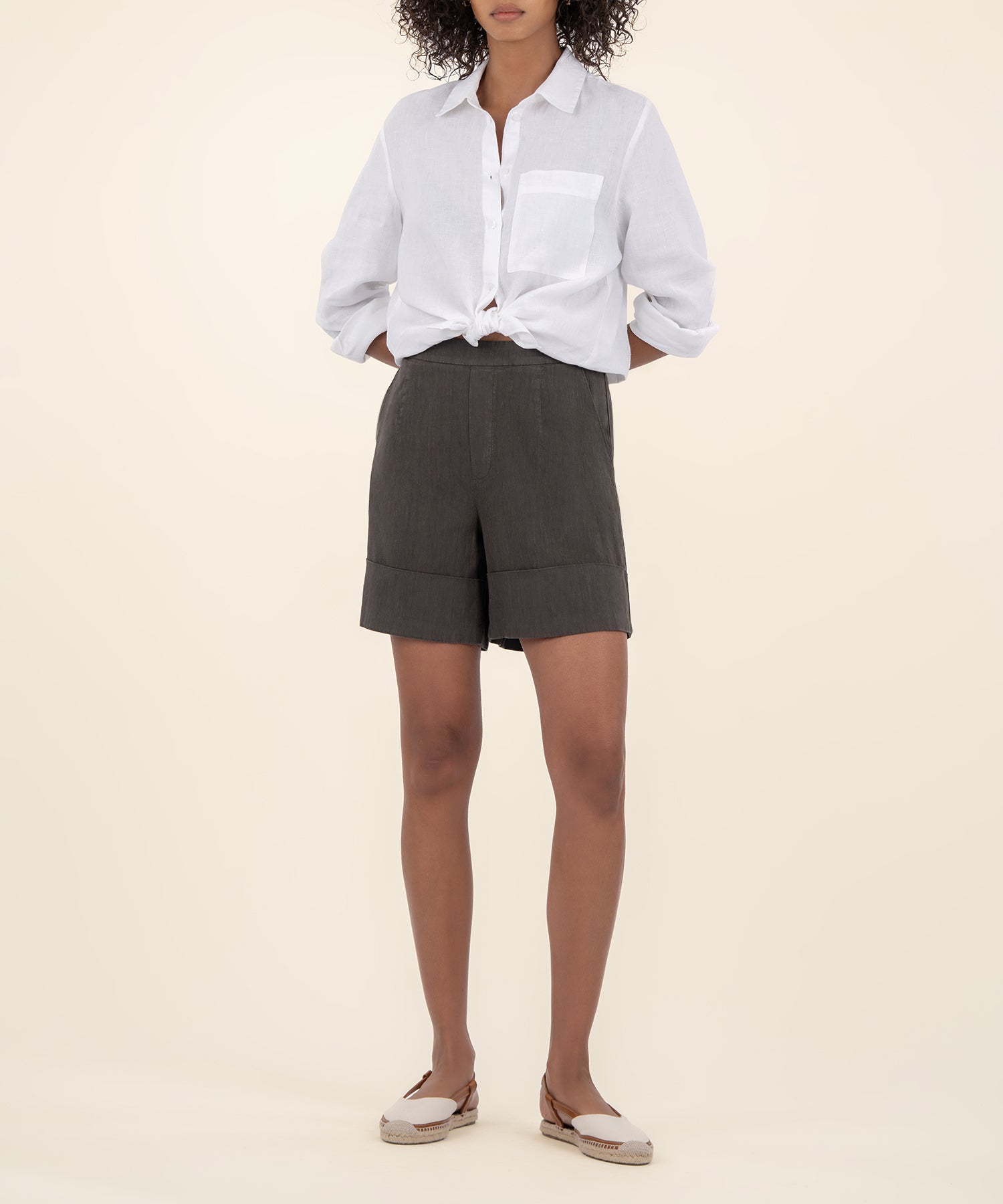 - These relaxed shorts are crafted from a breathable linen blend material, perfect for warm-weather days. They’re designed with an elastic waist for all-day comfort and feature a subtle hem detail for a clean finish.