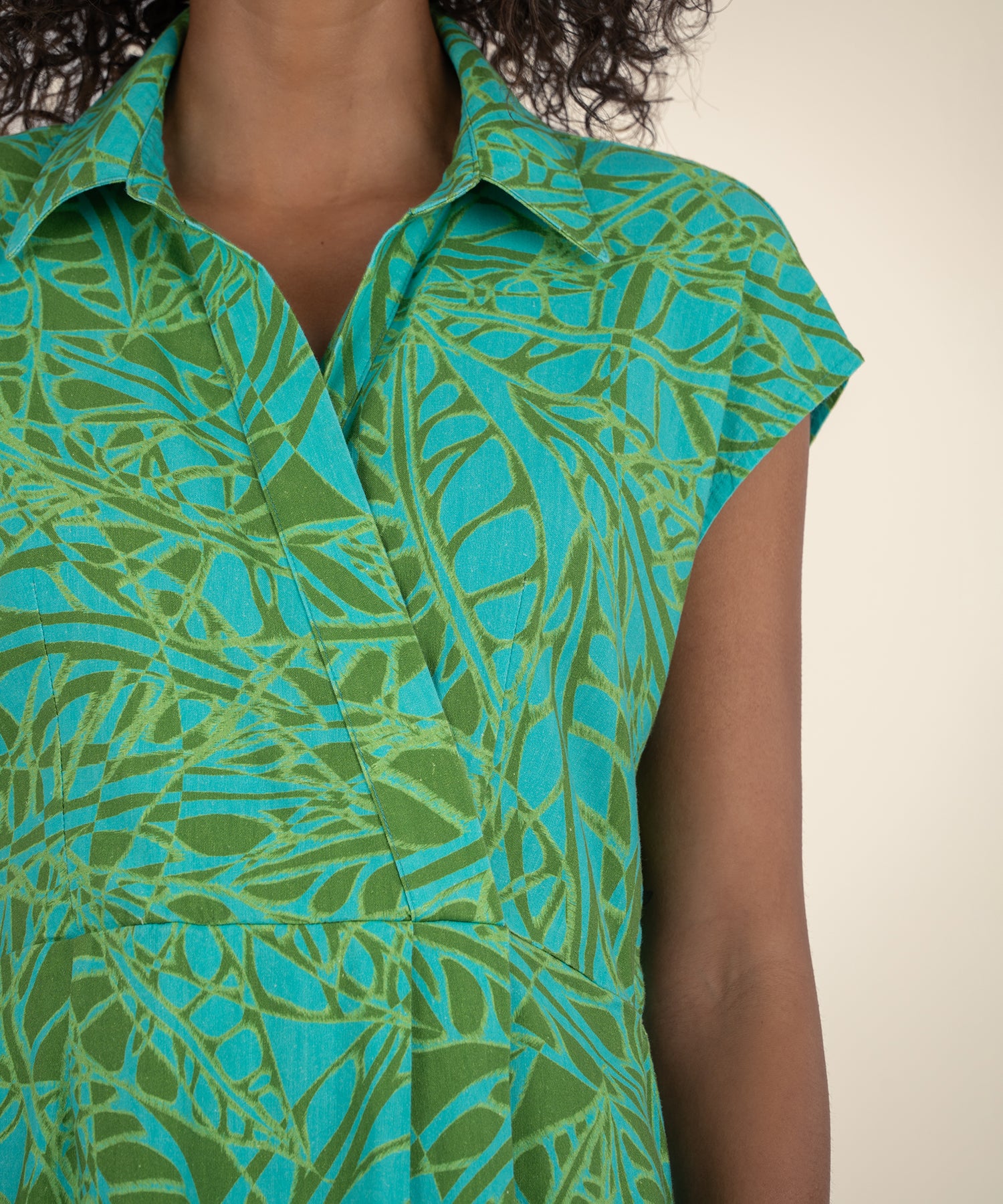 • Introducing our Beach Collection – an online exclusive that adds a vibrant touch to your summer wardrobe. This wrap dress with a shirt collar is crafted from a breathable linen-mixed material, offering the perfect blend of comfort and style for those sunny beach days. The unique print creates a bold, eye-catching look that’s sure to turn heads.