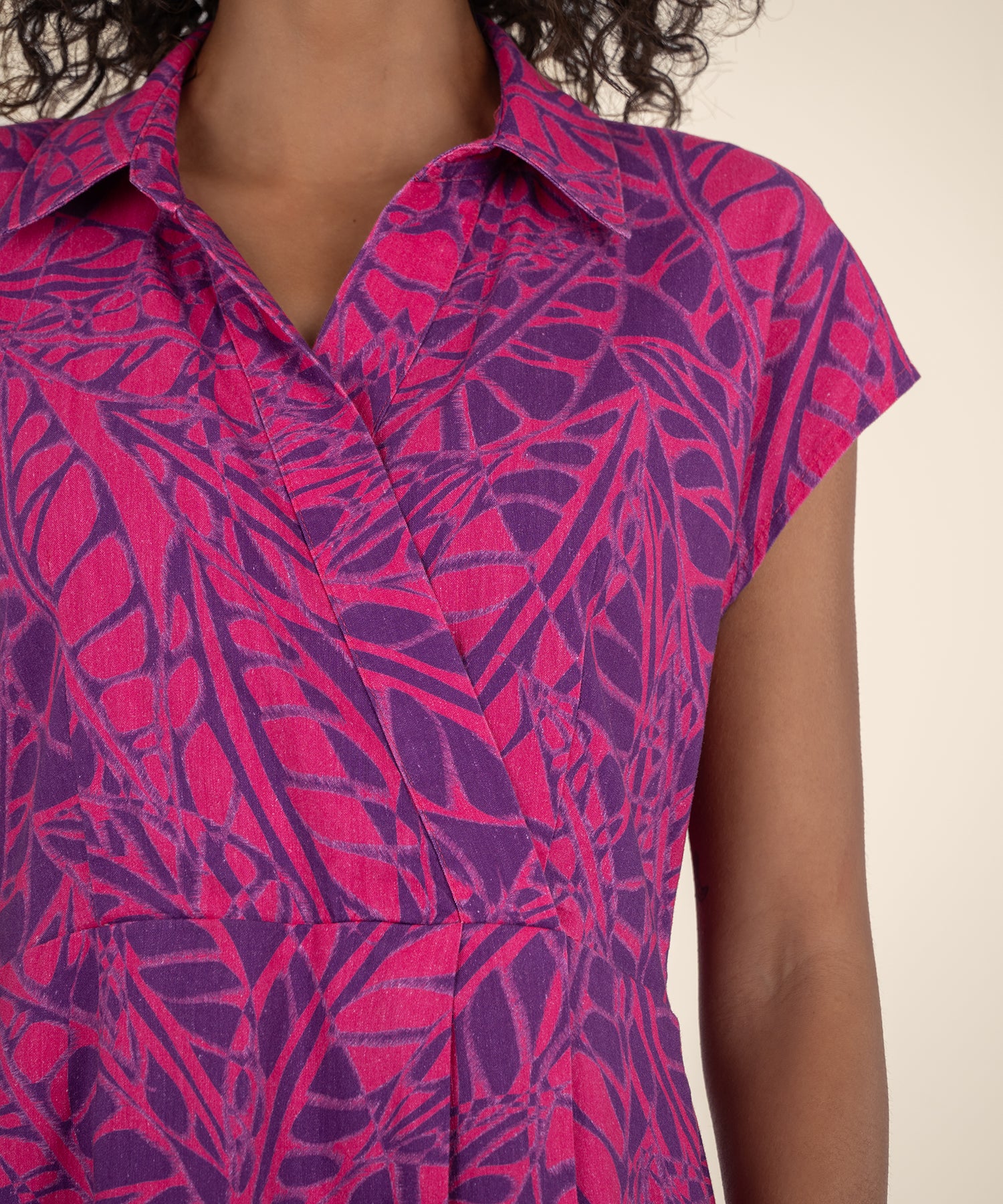 - Introducing our Beach Collection – an online exclusive that adds a vibrant touch to your summer wardrobe. This wrap dress with a shirt collar is crafted from a breathable linen-mixed material, offering the perfect blend of comfort and style for those sunny beach days. The unique print creates a bold, eye-catching look that’s sure to turn heads.