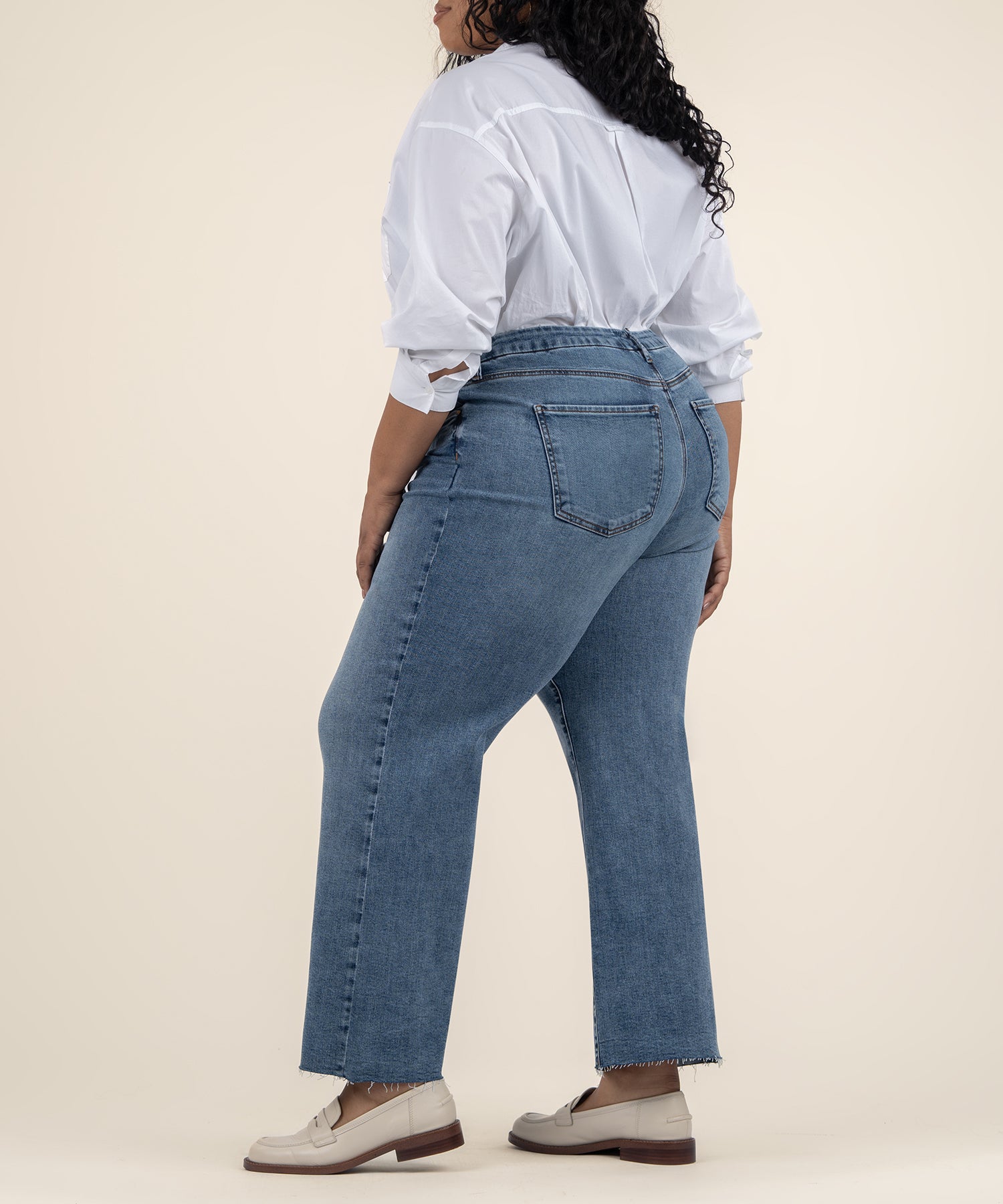 - Casual-chic and right on trend, these ankle-cropped wide-leg jeans with raw hems are made from light-wash stretch denim and our fab ab front pockets that smooth and add comfort.