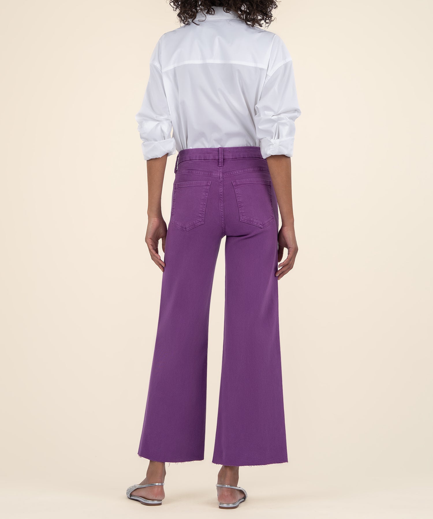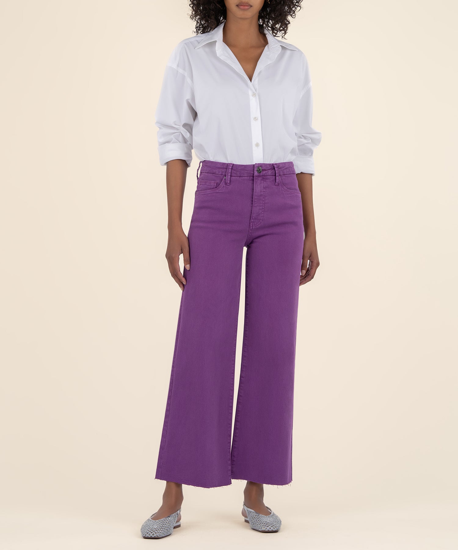 - A vibrant hue refreshes the style of these subtly faded, raw-hem wide-leg jeans fitted with Fab Ab front pockets that comfortably shape and smooth.