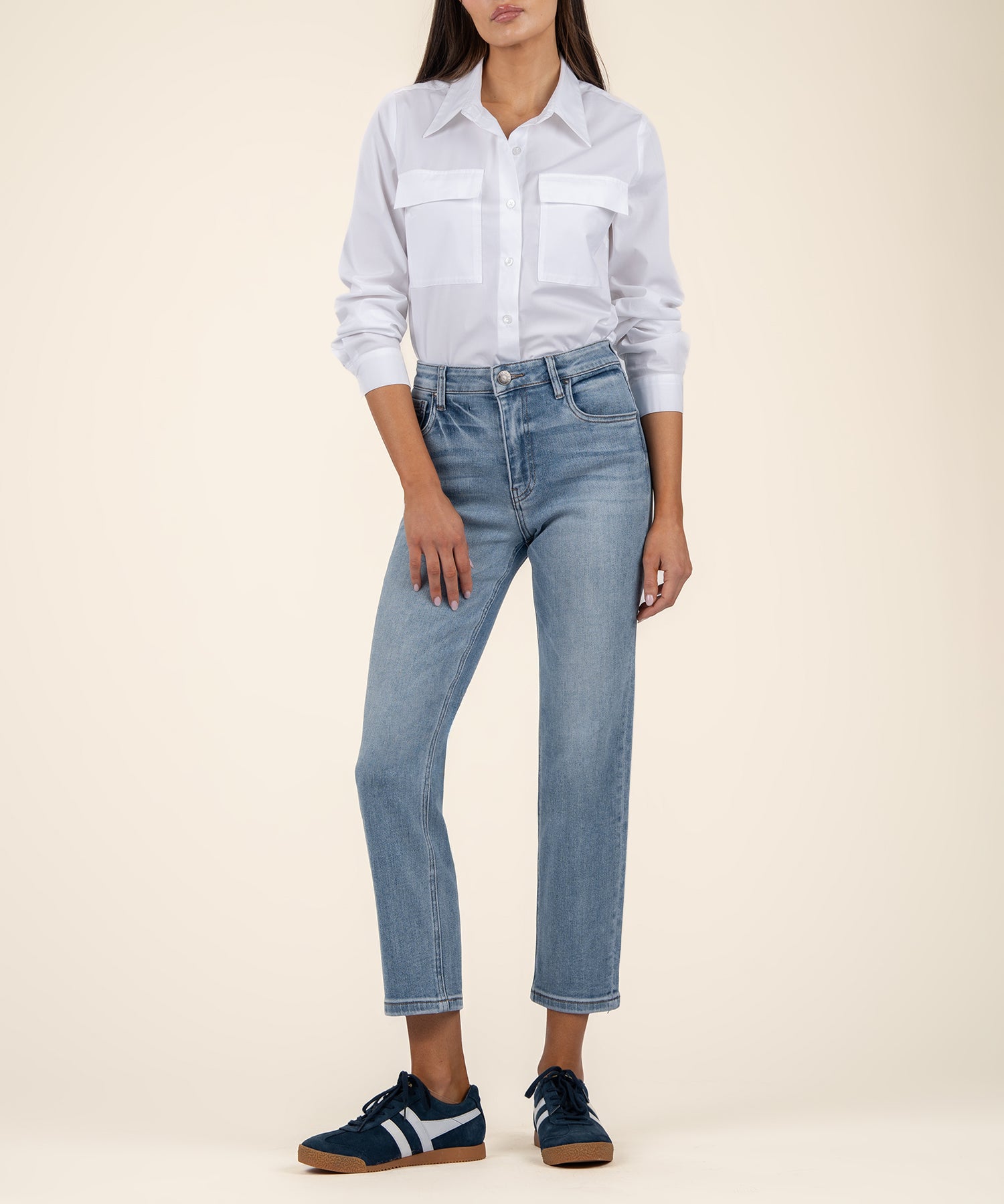- A whiskered light wash brings a casual-cool, vintage-inspired look to versatile straight-leg jeans cut to a slightly cropped length.