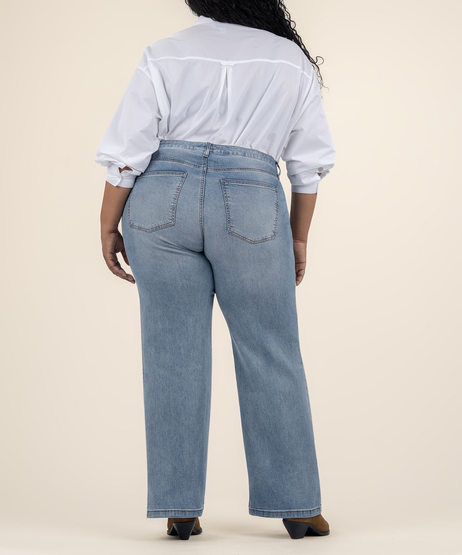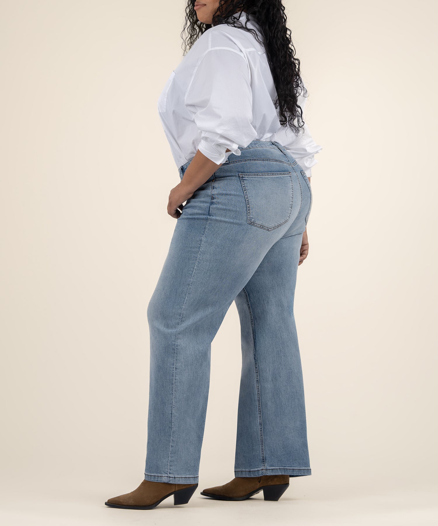 - These high rise wide leg jeans with a clean finish hem are a must-have for your wardrobe. The medium base wash offers a timeless look that pairs effortlessly with any outfit. Comfortable, flattering, and stylish.