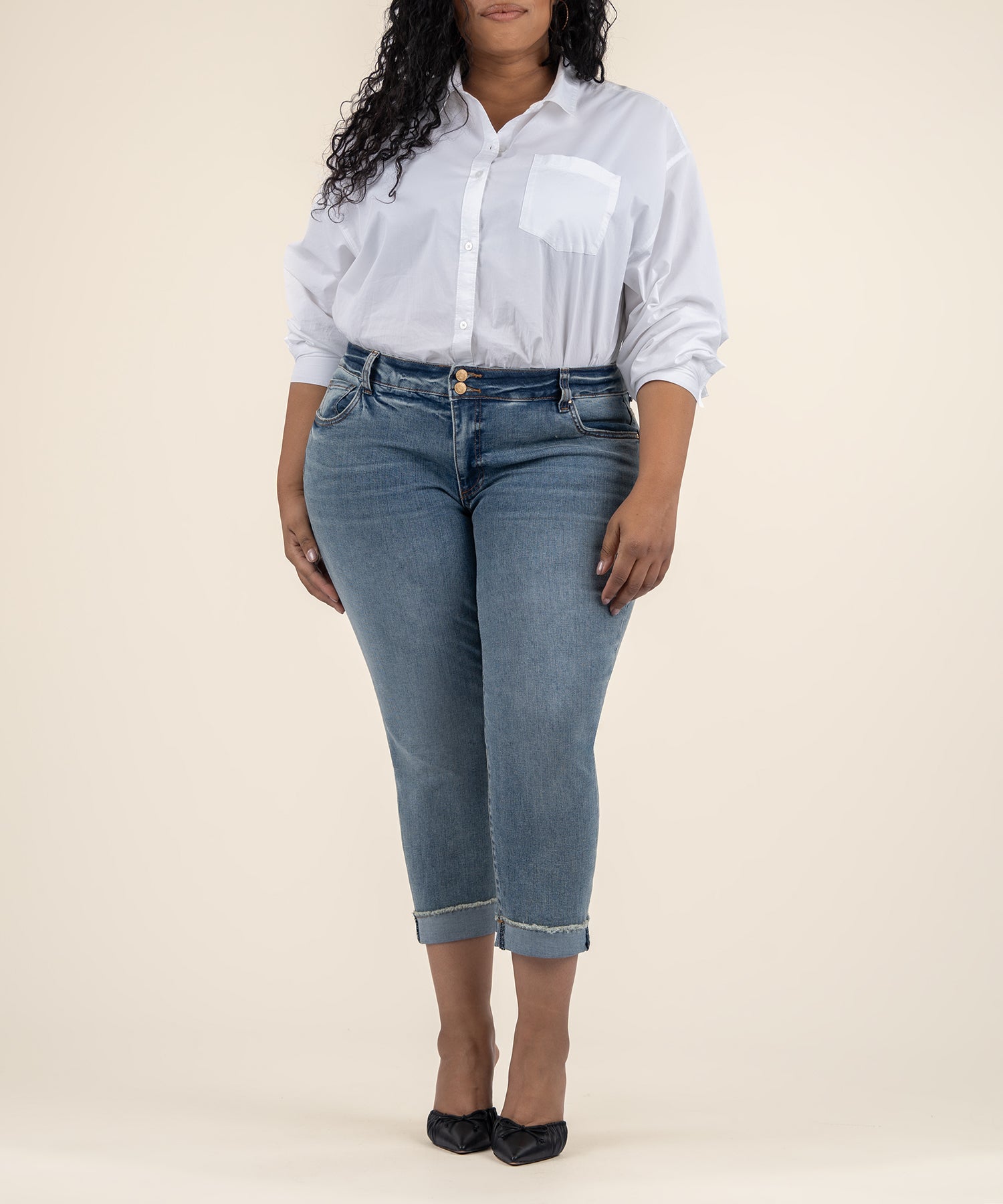 - Size & Fit: Inseam After Roll Up: 24 1/4", Inseam Before Roll Up: 26", Leg Opening: 15", Rise: 11 3/4, Silhouette: Straight Leg