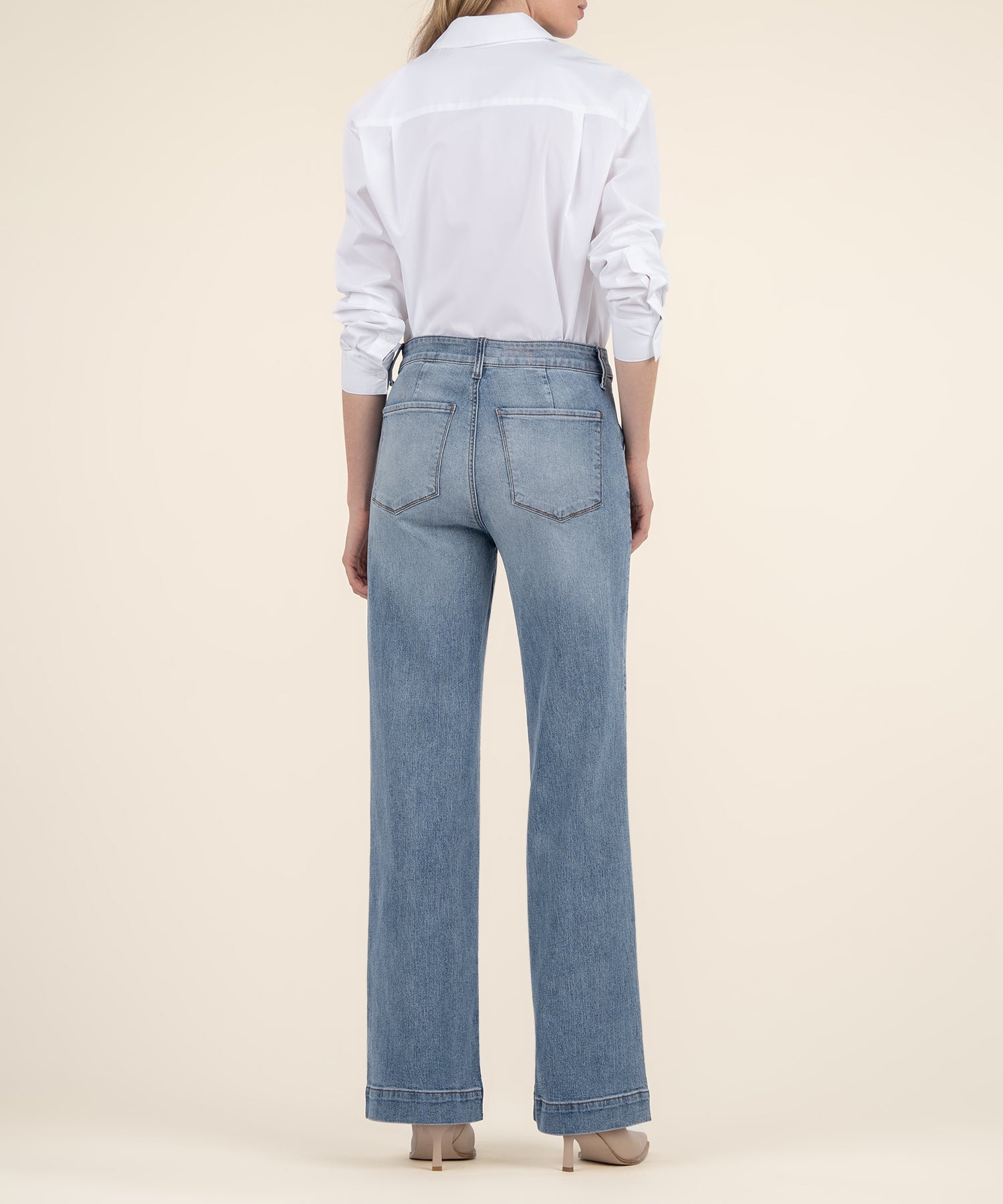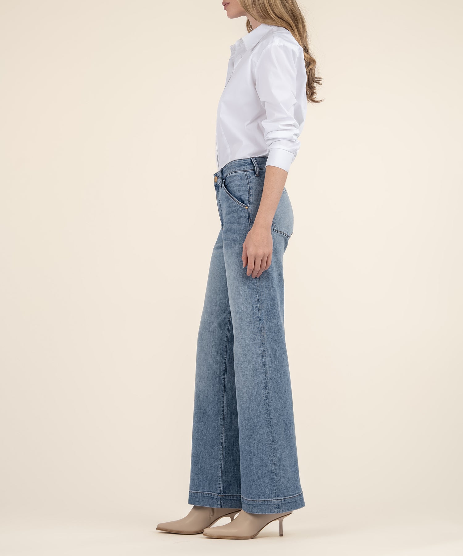 - These high-rise Fab Ab must-have wide-leg jeans with slash front pockets provide a sleek silhouette and effortless style. A perfect mix of fashion and functionality for your everyday look.