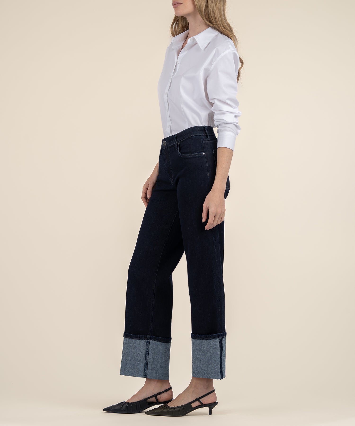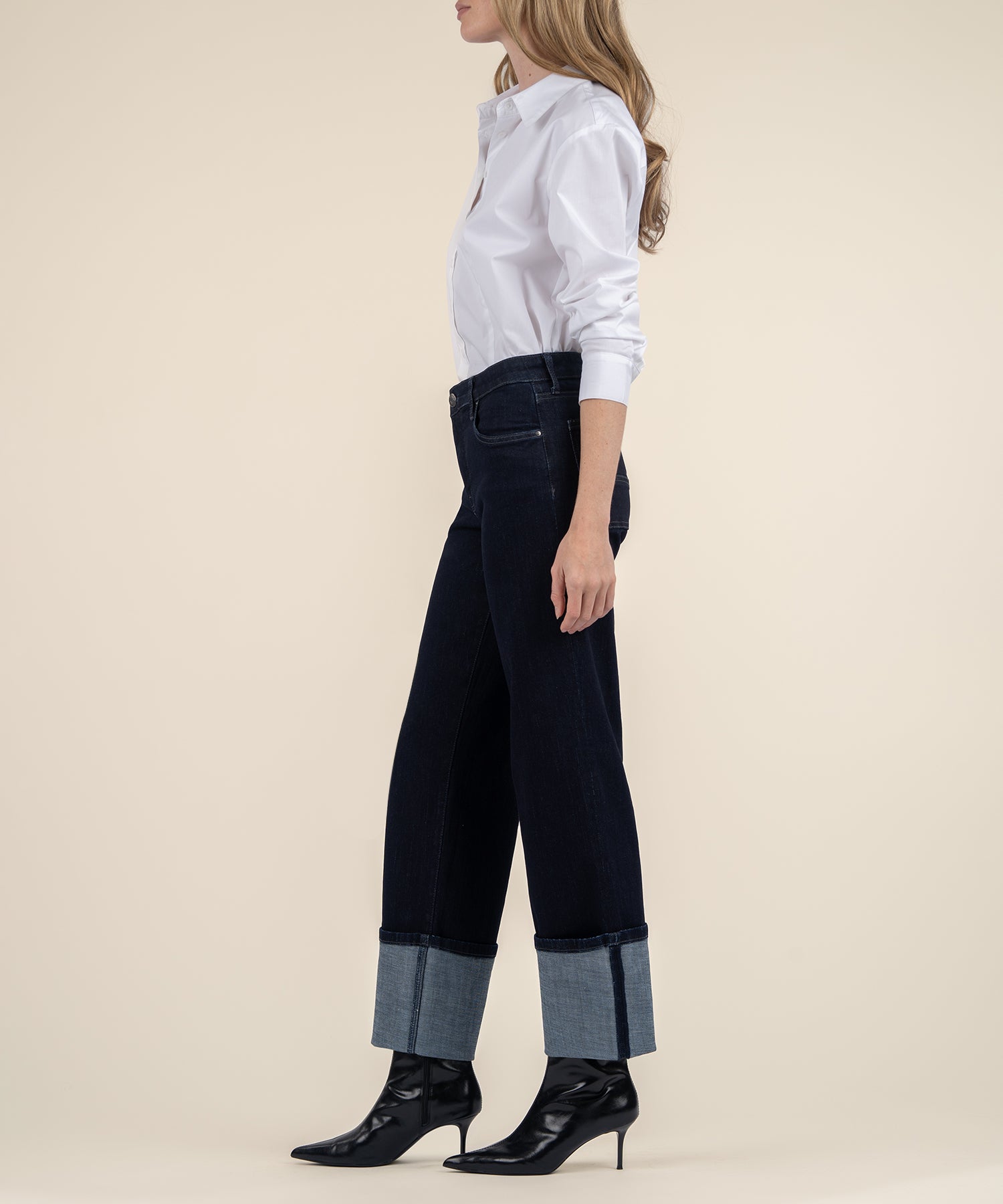 - Step into effortless style with these high-rise Fab Ab wide-leg jeans. Featuring a flattering fit and trendy roll-up hems, they blend comfort with a relaxed, fashion-forward vibe.