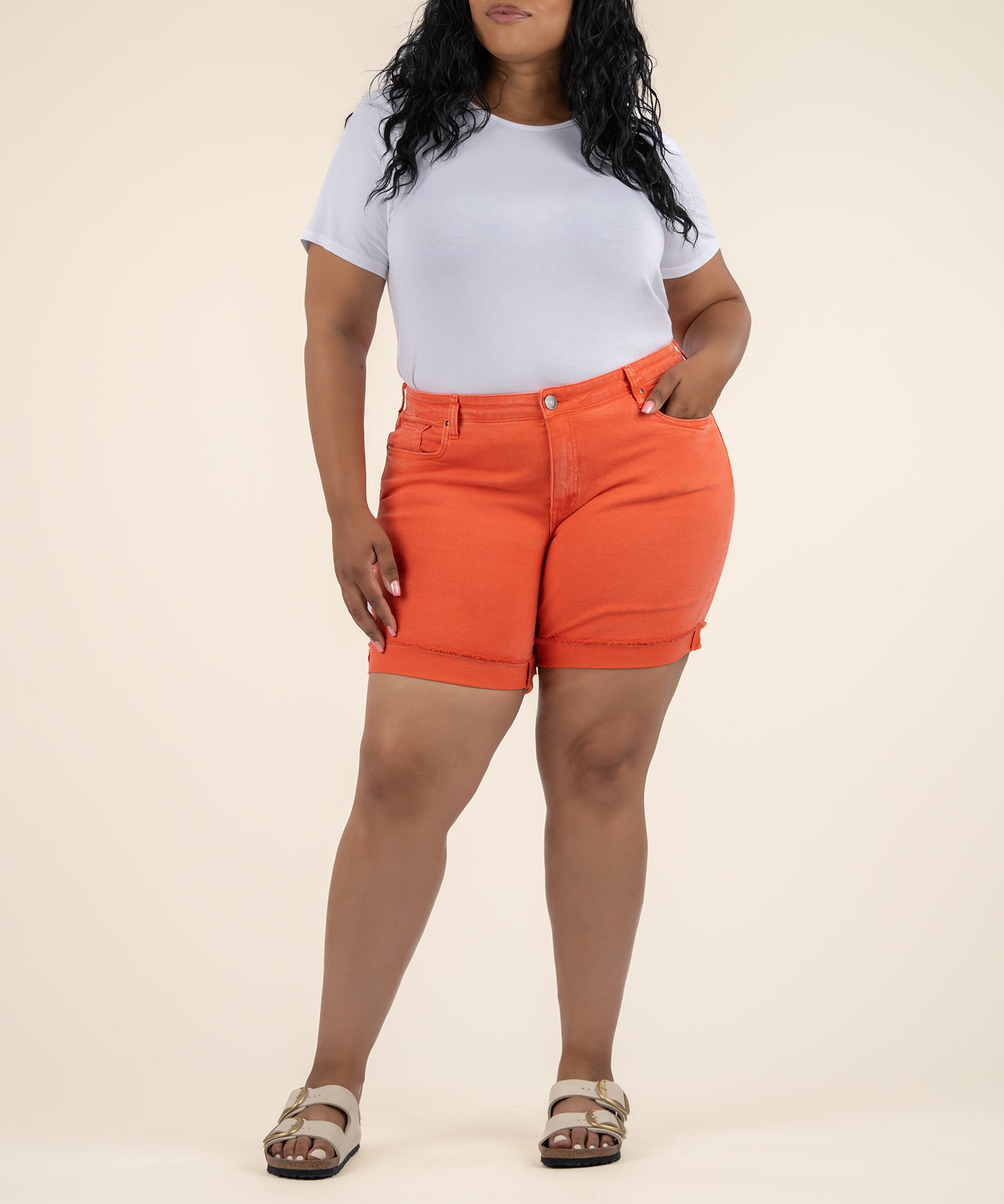 - These boyfriend shorts bring a bold pop of color with a fun, eye-catching hue. The roll-up cuffs with a raw hem add a laid-back vibe, making them perfect for sunny days and casual outings.