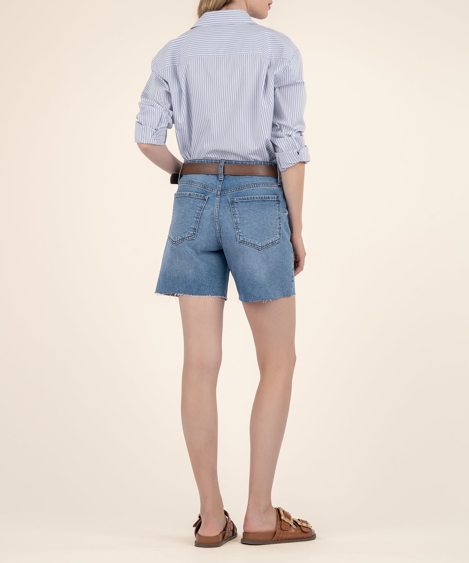 - Meet one of our most popular style shorts, a must-have addition to your wardrobe. Designed with a flattering high-rise fit and a trendy raw hem, the medium wash gives them a classic yet effortlessly cool vibe, making them the perfect go-to piece for any occasion.