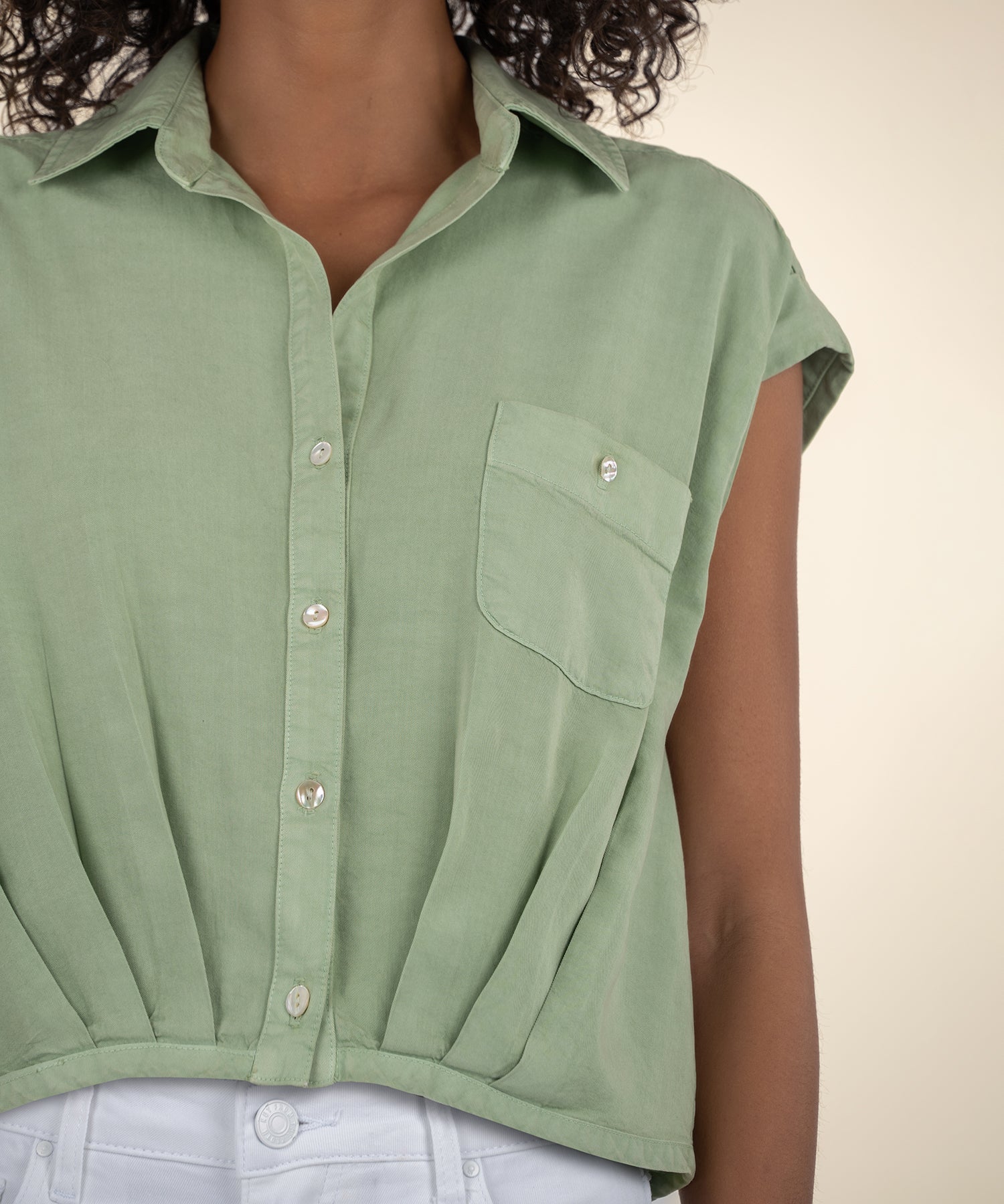 - Add a fresh touch to your spring wardrobe. Designed with pleats at the front and back, and short cuffed sleeves, this soft and breathable top offers both style and comfort. Perfect for those warmer days when you need a relaxed yet polished look.
