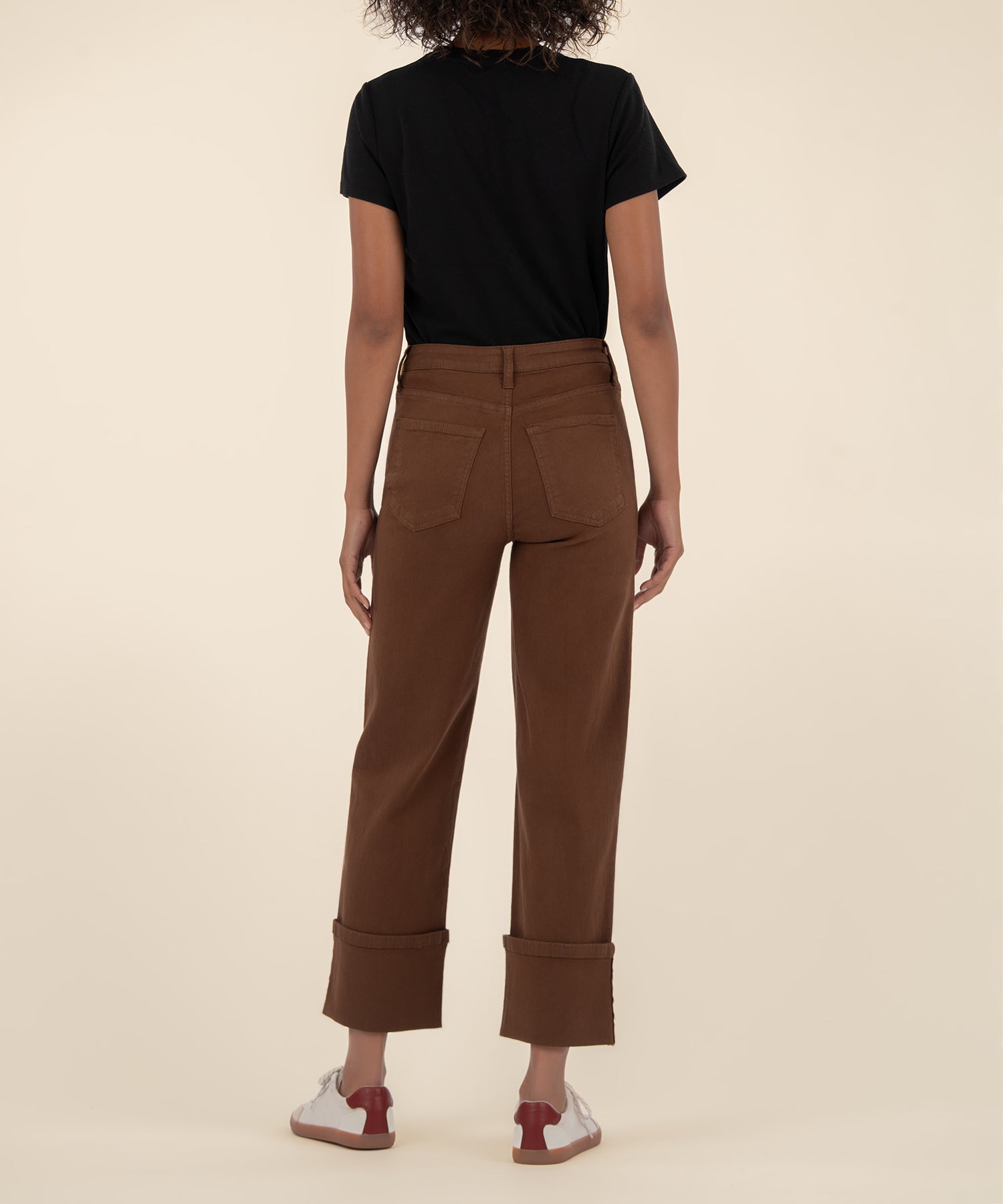 - These high-rise straight-leg pants come in a rich cafe color and feature stretchy material for comfortable wear. A versatile piece that blends classic fit with cozy, stylish vibes.